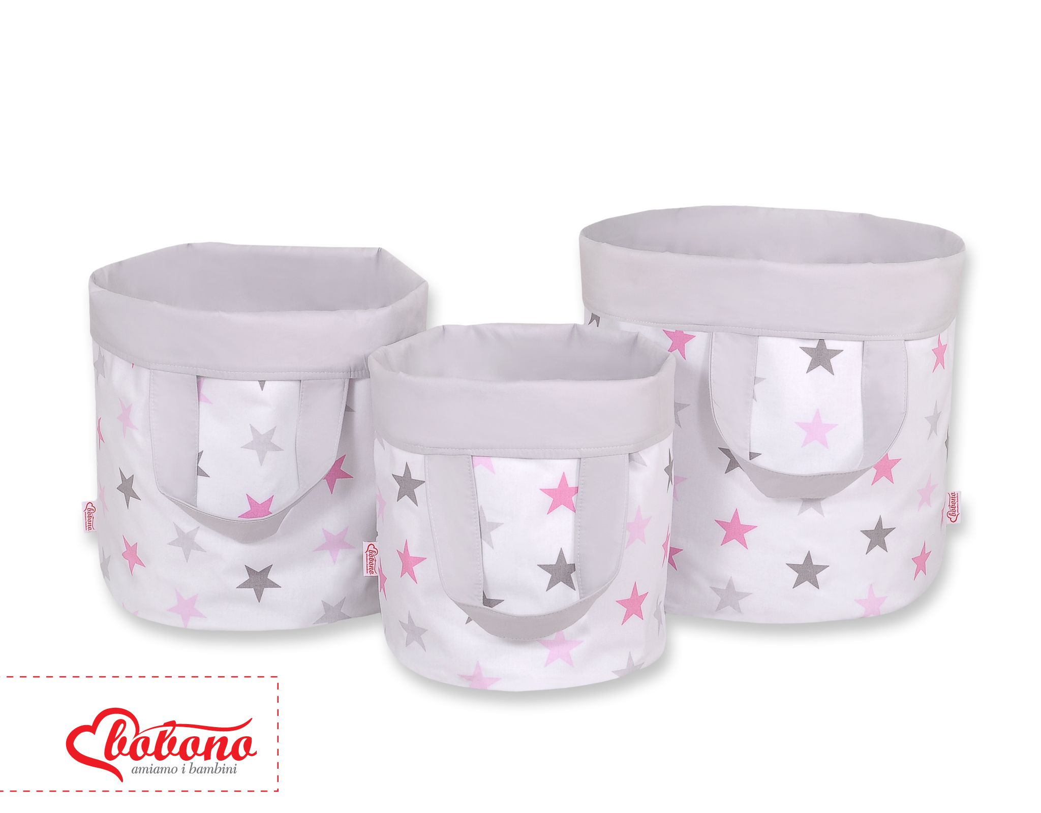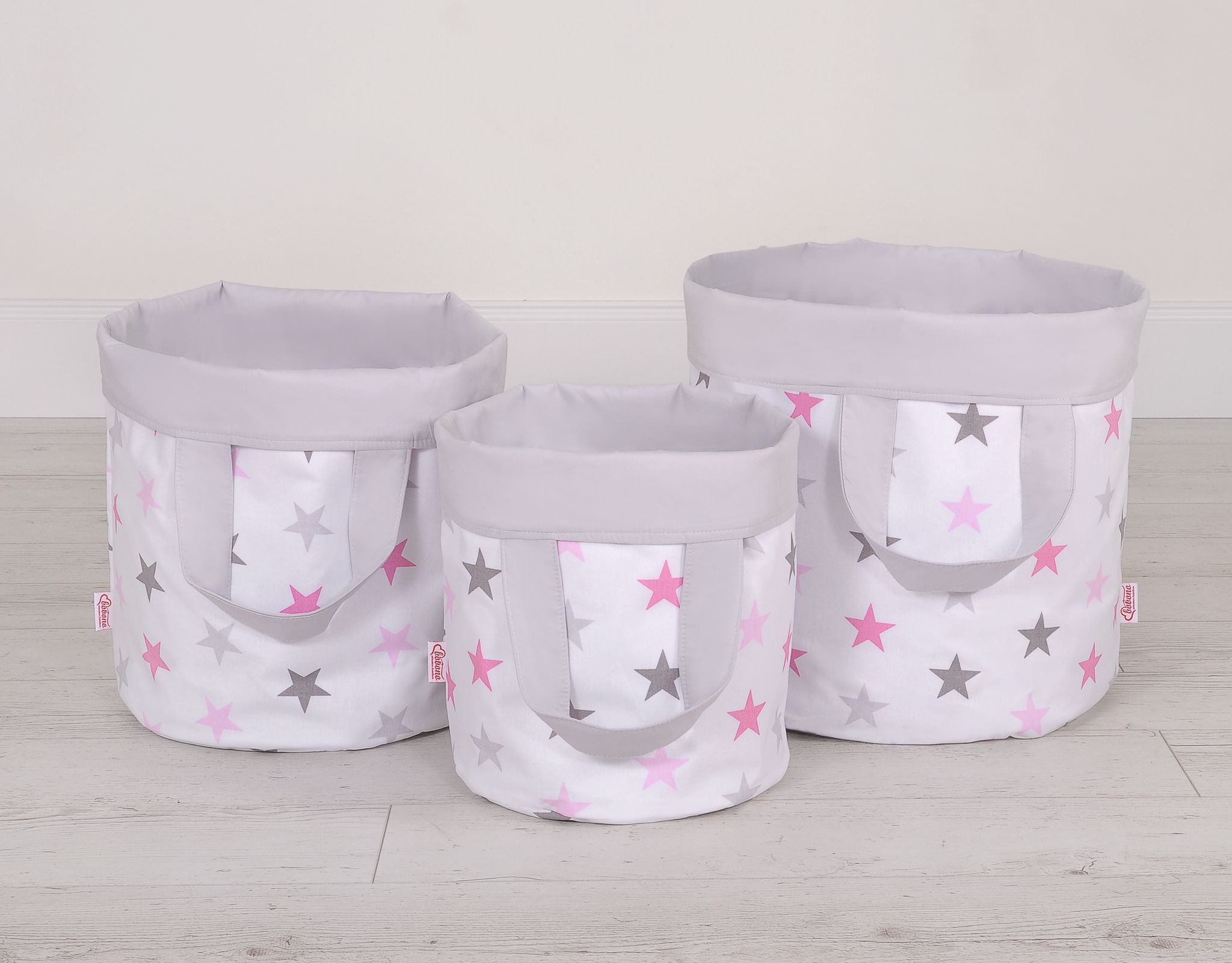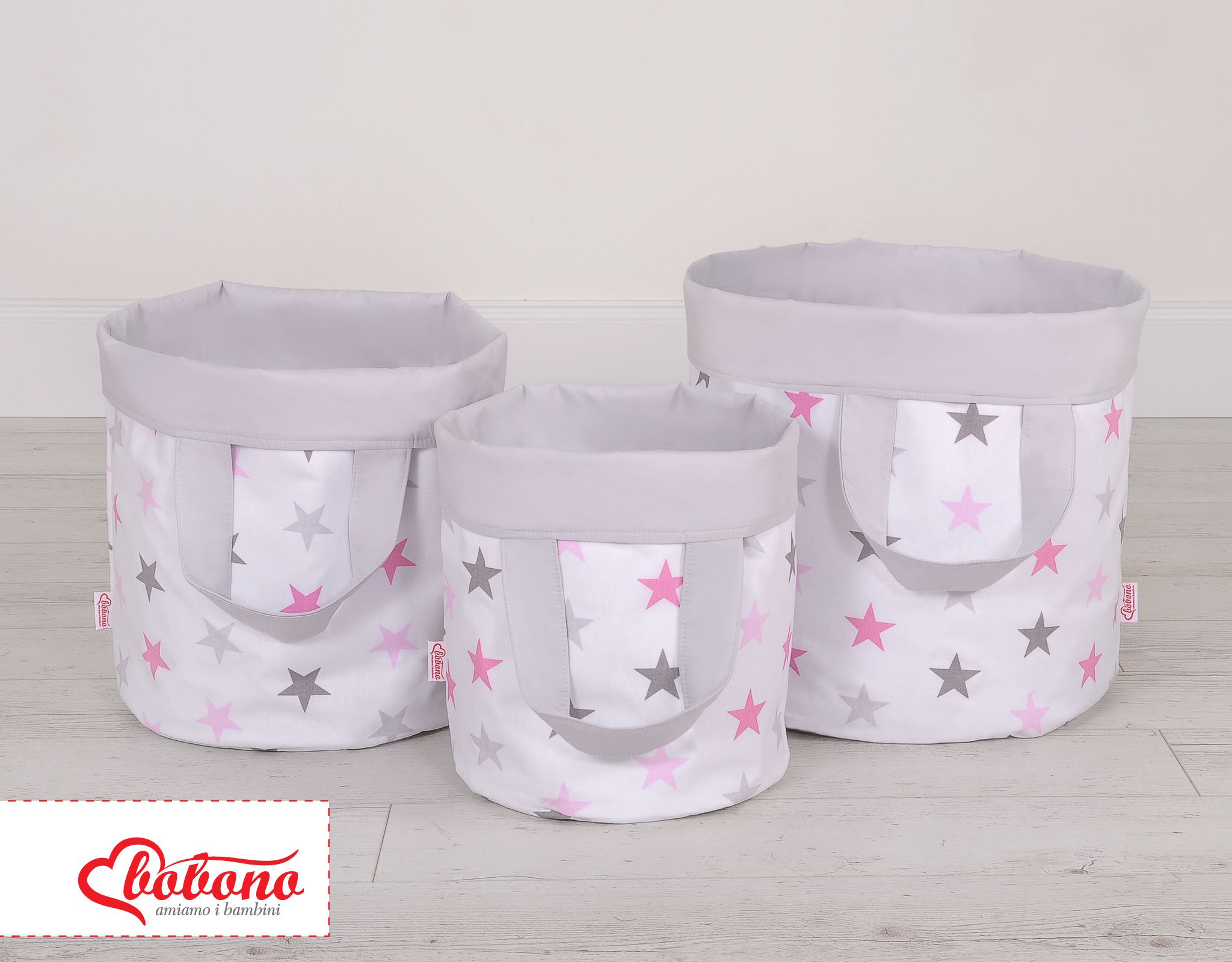 Stubenwagen » Spielzeug Kuscheltiere » Doppelseitiger Spielzeugkorb » Doppelseitiger Spielzeugkorb M » Doppelseitiger Spielzeugkorb M - Rosa-graue Sternen/grau