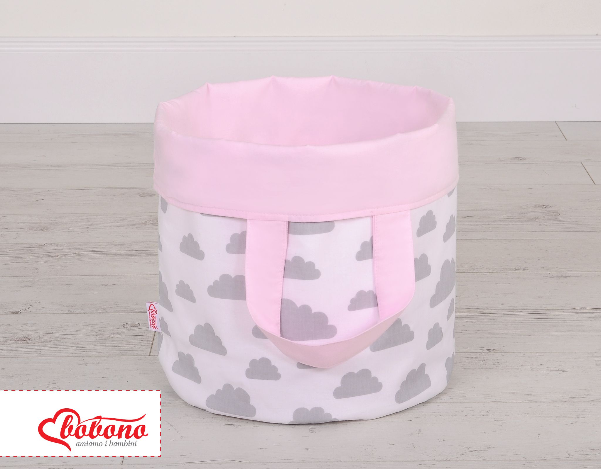 Stubenwagen » Spielzeug Kuscheltiere » Doppelseitiger Spielzeugkorb » Doppelseitiger Spielzeugkorb S » Doppelseitiger Spielzeugkorb S - Wolken grau/rosa