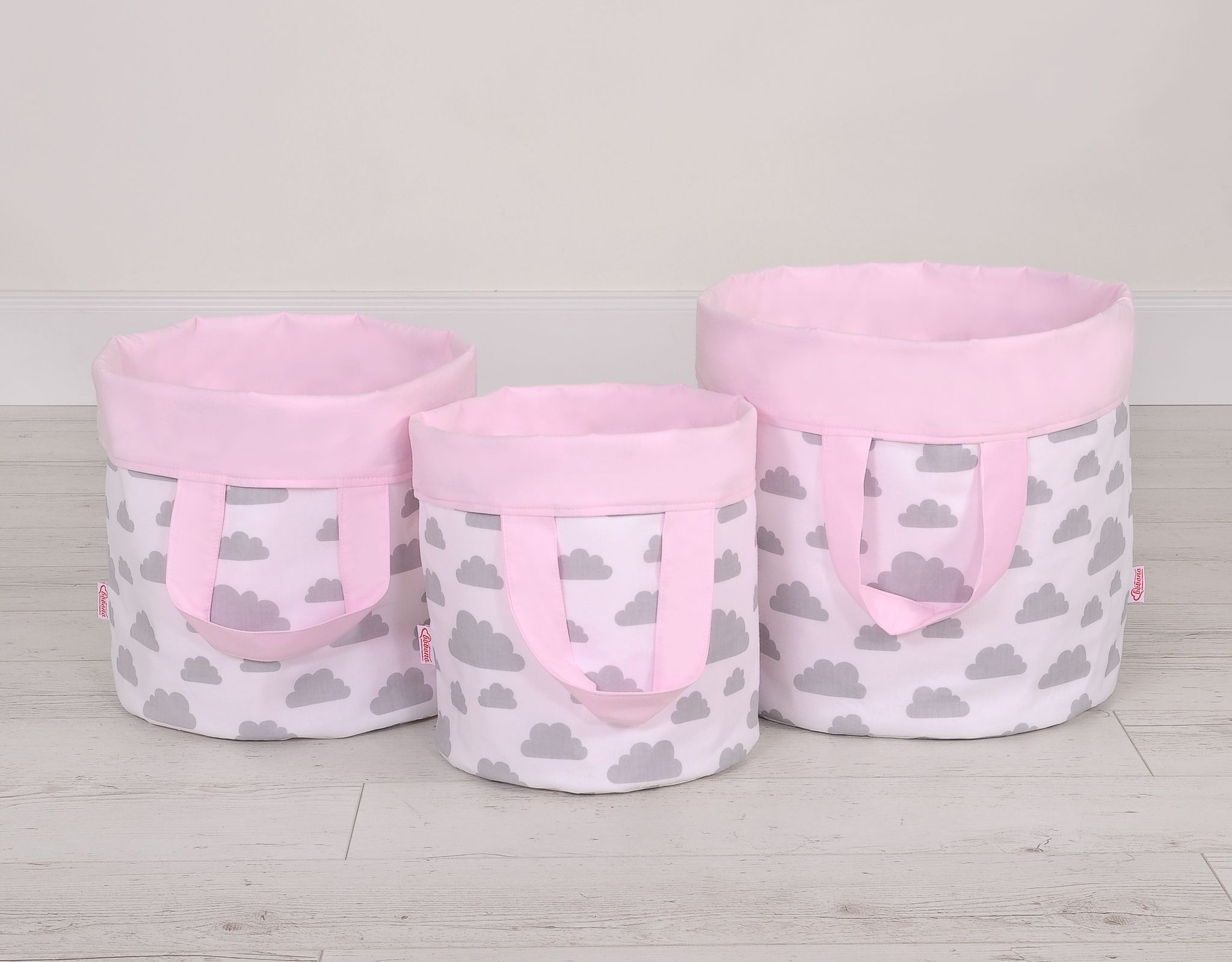 Doppelseitiger Spielzeugkorb S - Wolken grau/rosa