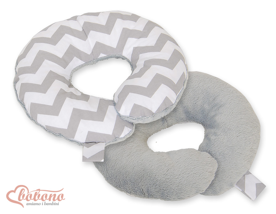 Stubenwagen » Bettwäsche für Babys » Bettwäsche für Babybett SIMPLE » Baby Neckenstützkissen - Baby Reisekissen » Doppelseitiges Baby Nackenstützkissen - Chevron grau