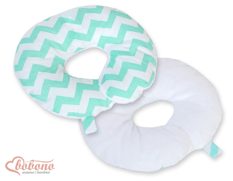 Stubenwagen » Bettwäsche für Babys » Bettwäsche für Babybett SIMPLE » Baby Neckenstützkissen - Baby Reisekissen » Doppelseitiges Baby Nackenstützkissen - Chevron minze