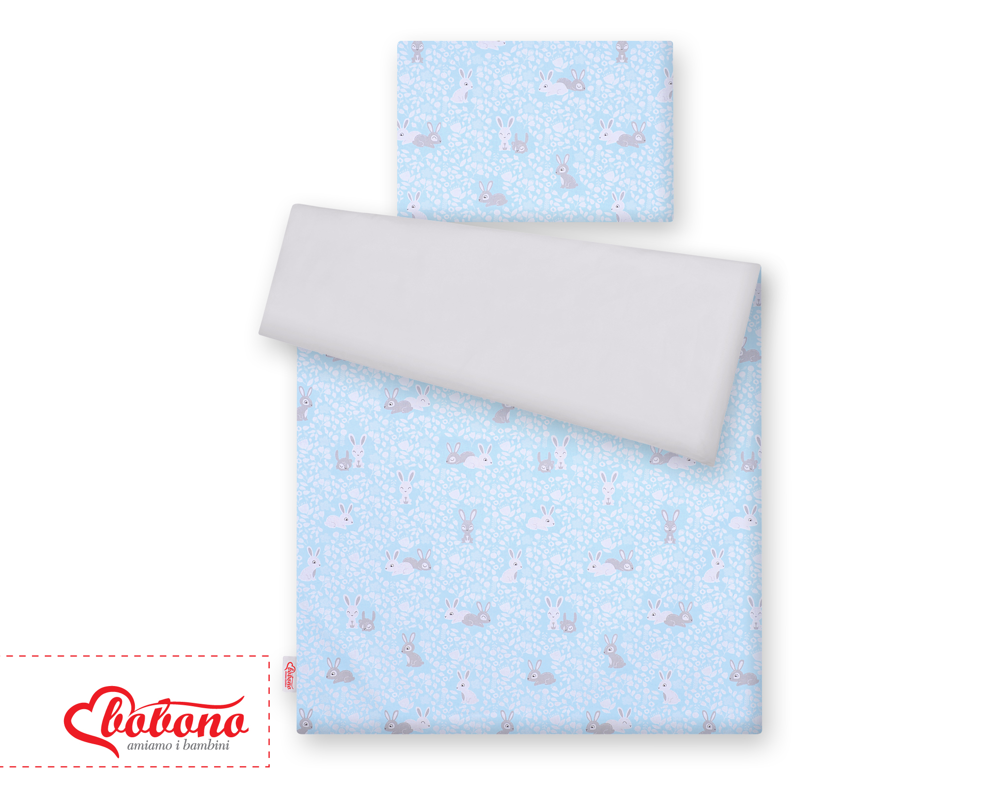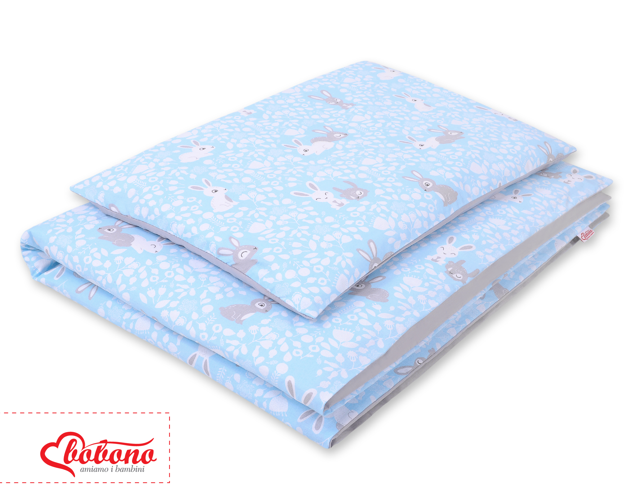 Für Kinderbett 60x120cm und 70x140cm. Hasen Grau Blaue Bettwäsche Doppelseitiges