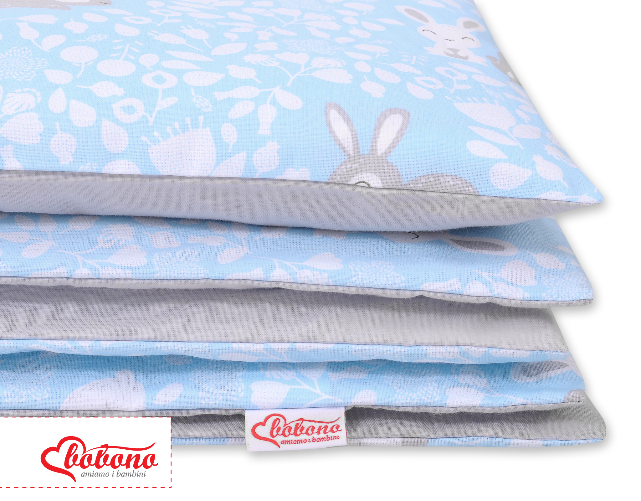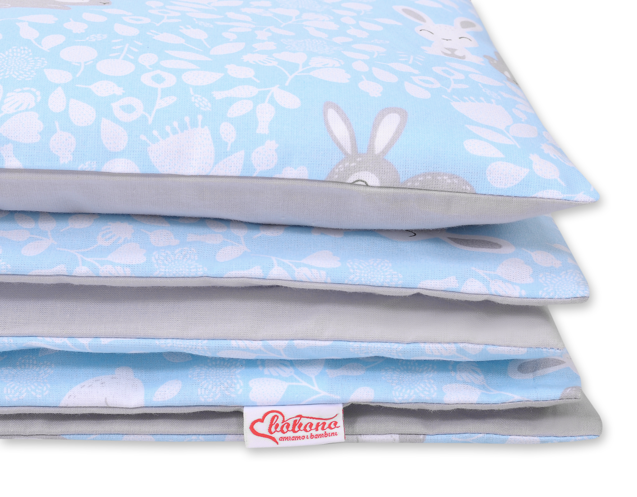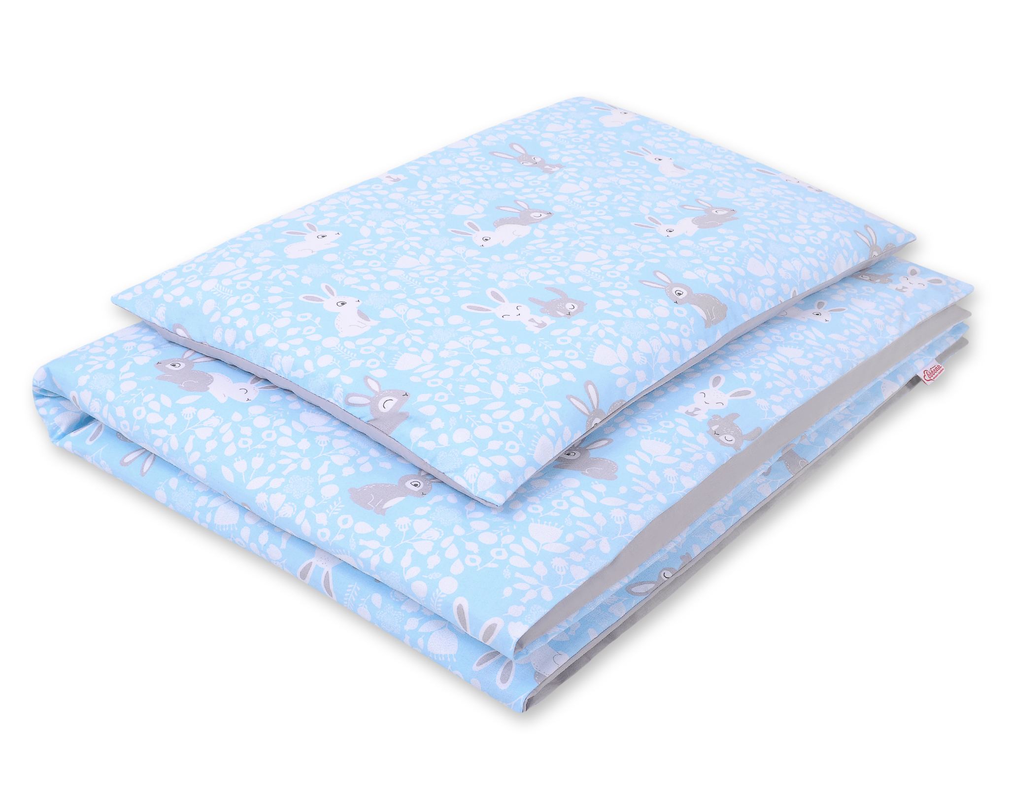Doppelseitiges Bettwäsche Set 2-tlg - blaue Hasen/grau In der bunte KinderBettwäsche verbringt der kleine Sprössling eine erholsame Nacht. Hochwertig aus Baumwolle gefertigt.