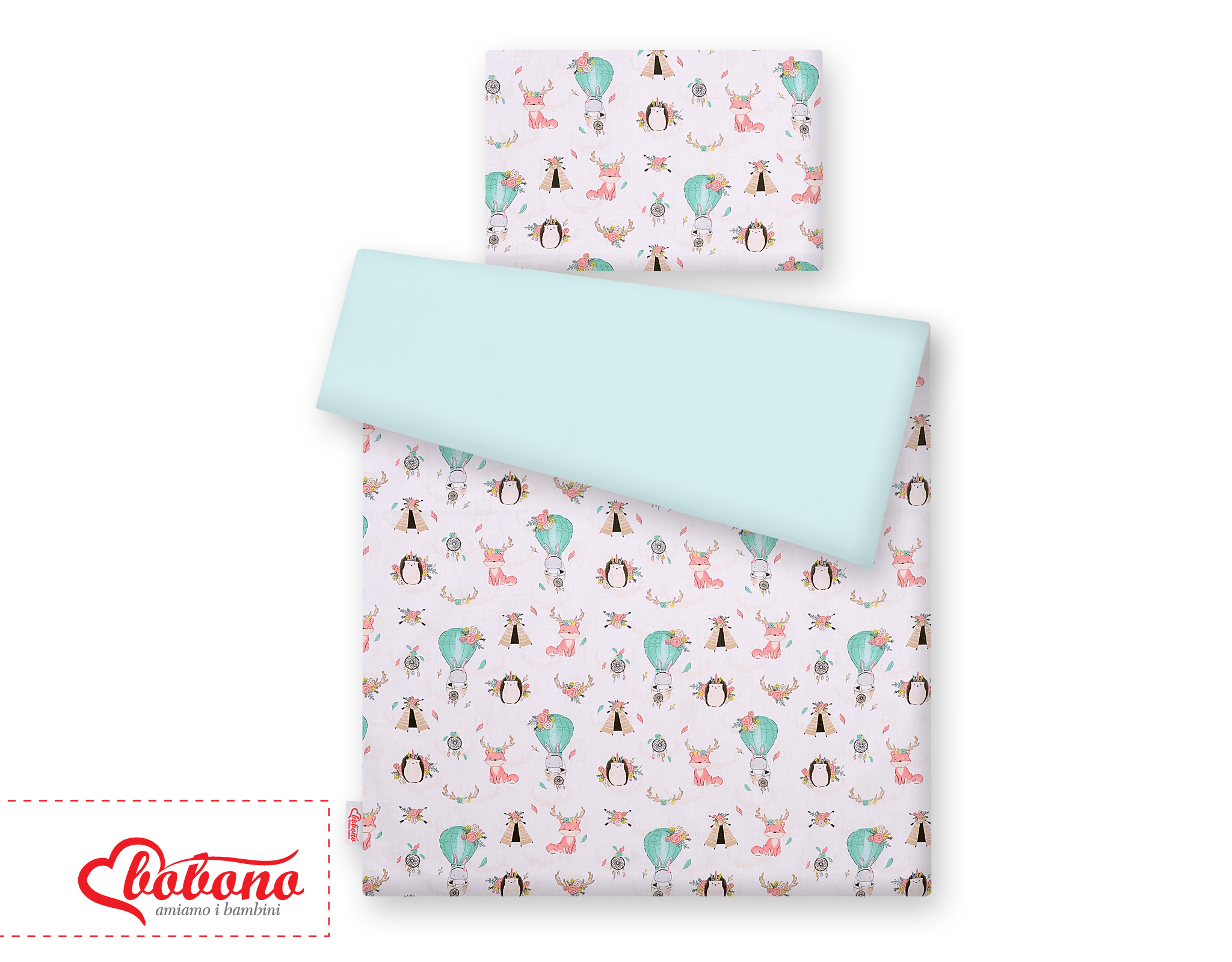 Für Kinderbett 60x120cm und 70x140cm. Beige Minze Füchse Bettwäsche Doppelseitiges