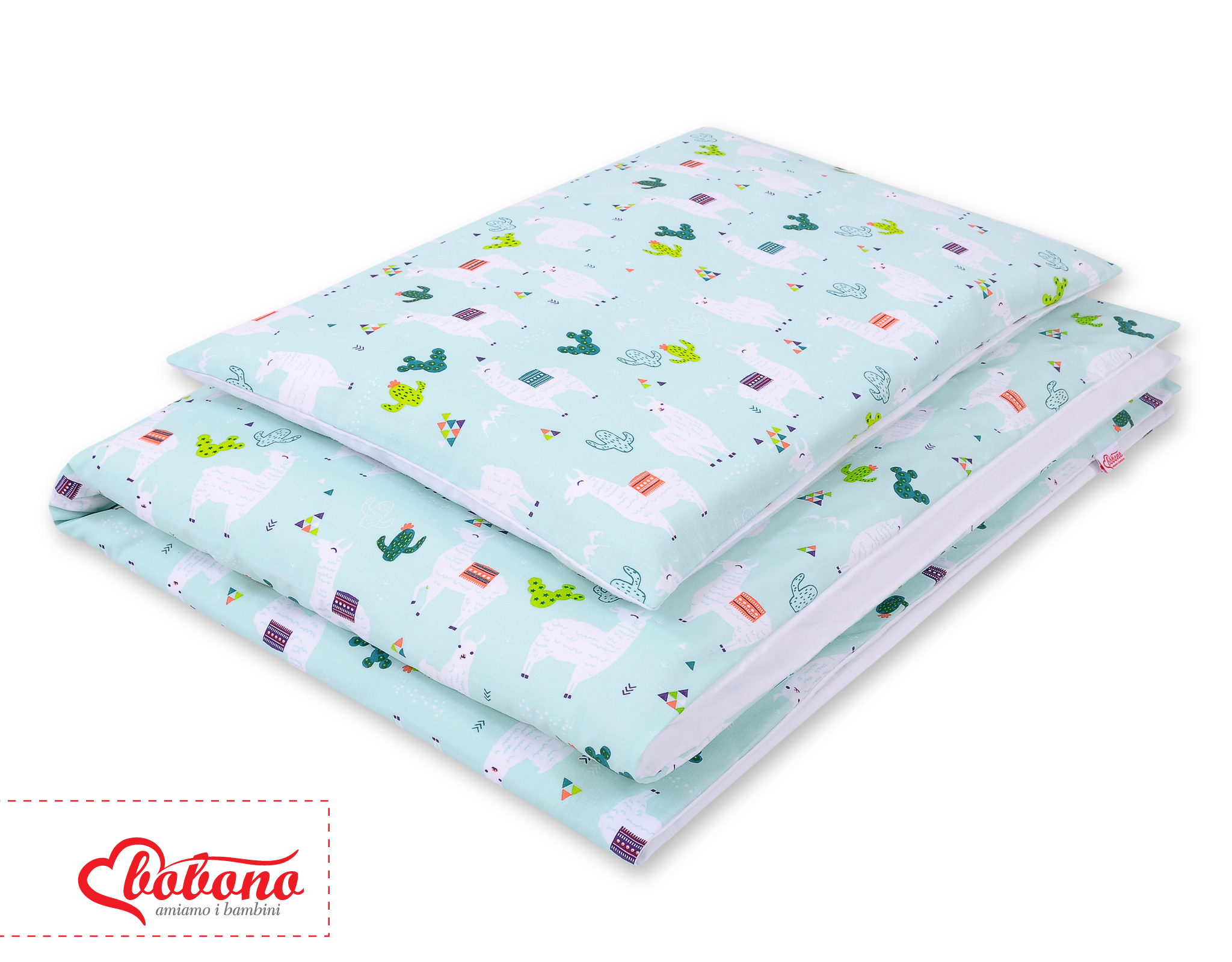 Für Kinderbett 60x120cm und 70x140cm. Minze Weiß Lamas Bettwäsche Doppelseitiges