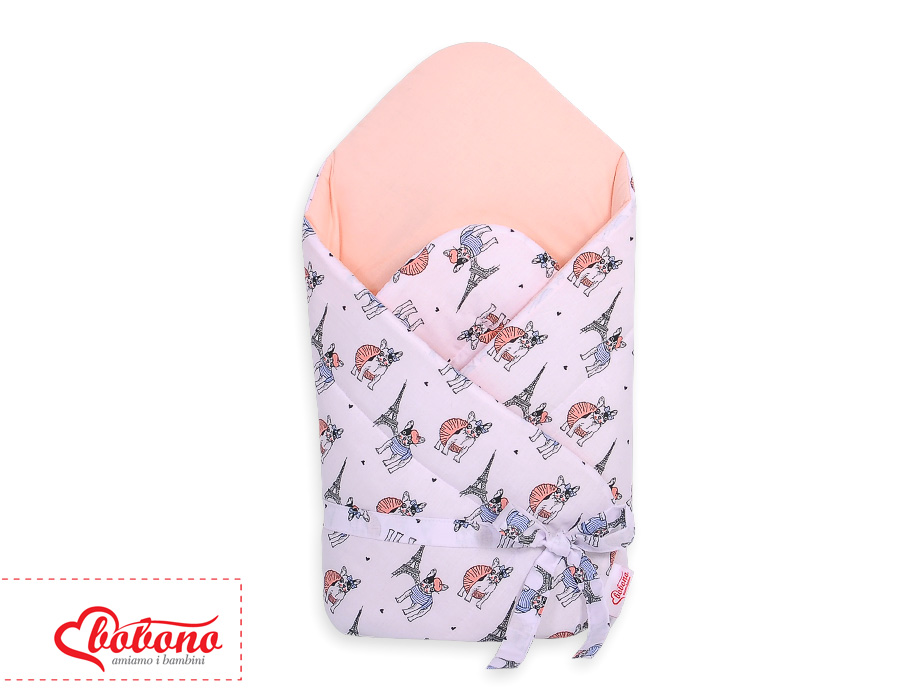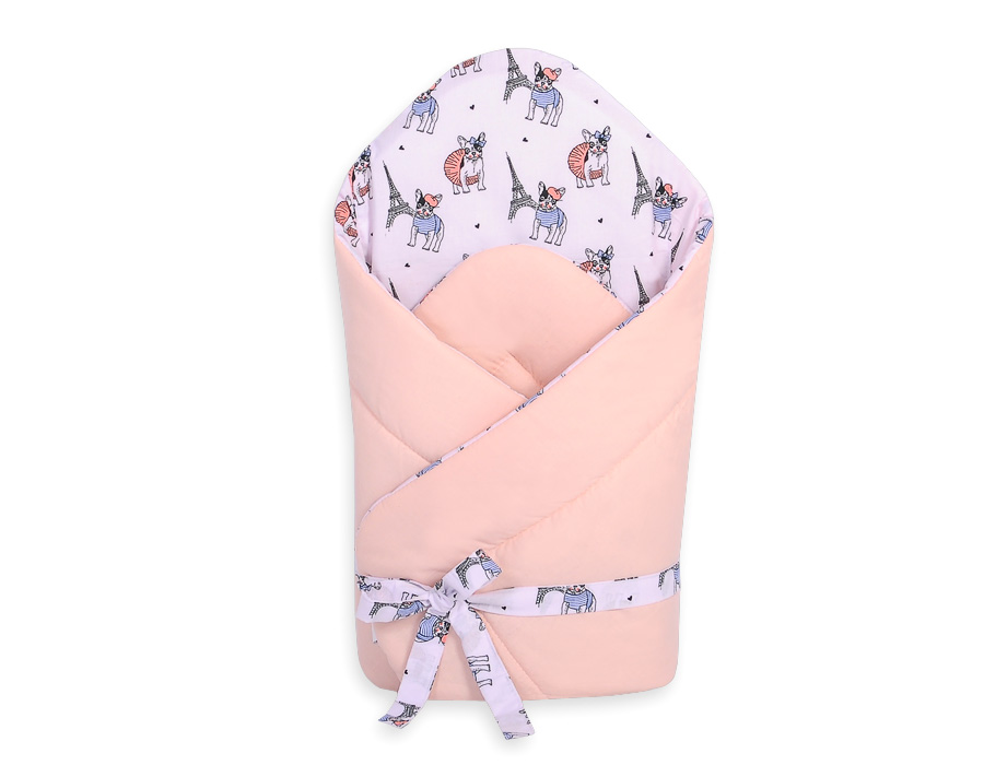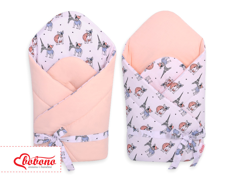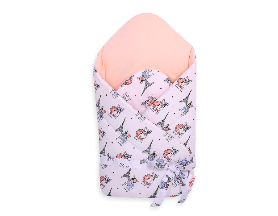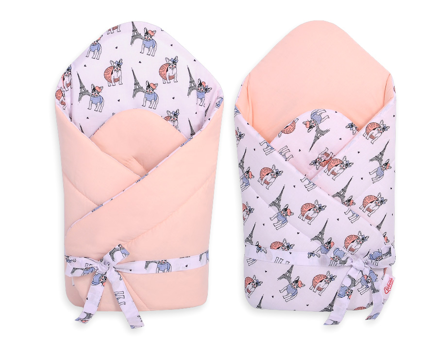Stubenwagen » Bettwäsche für Babys » Bettwäsche für Babybett FUN & JOY » Babyhörnchen Einschlagdecke mit Steifen Einlage mit Schleife » Doppelseitiges Einschlagdecke Babyhörnchen mit Steifen Einlage mit Schleife - little doggies