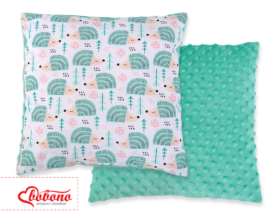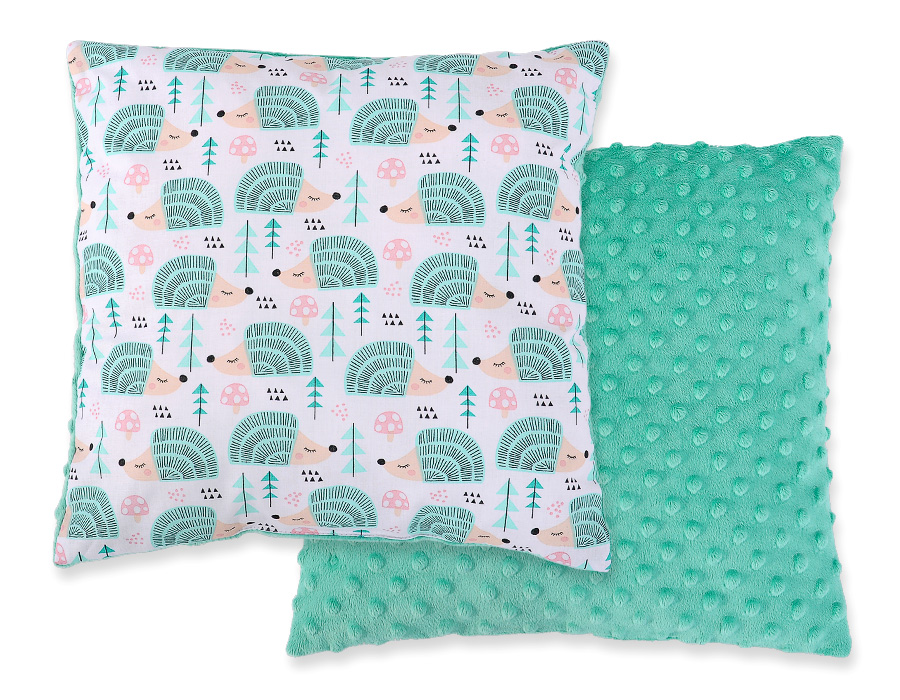 Stubenwagen » Bettwäsche für Babys » Bettwäsche für Babybett FUN & JOY » Doppelseitiges Kissen (minky) » Doppelseitiges Kissen - Igel minze