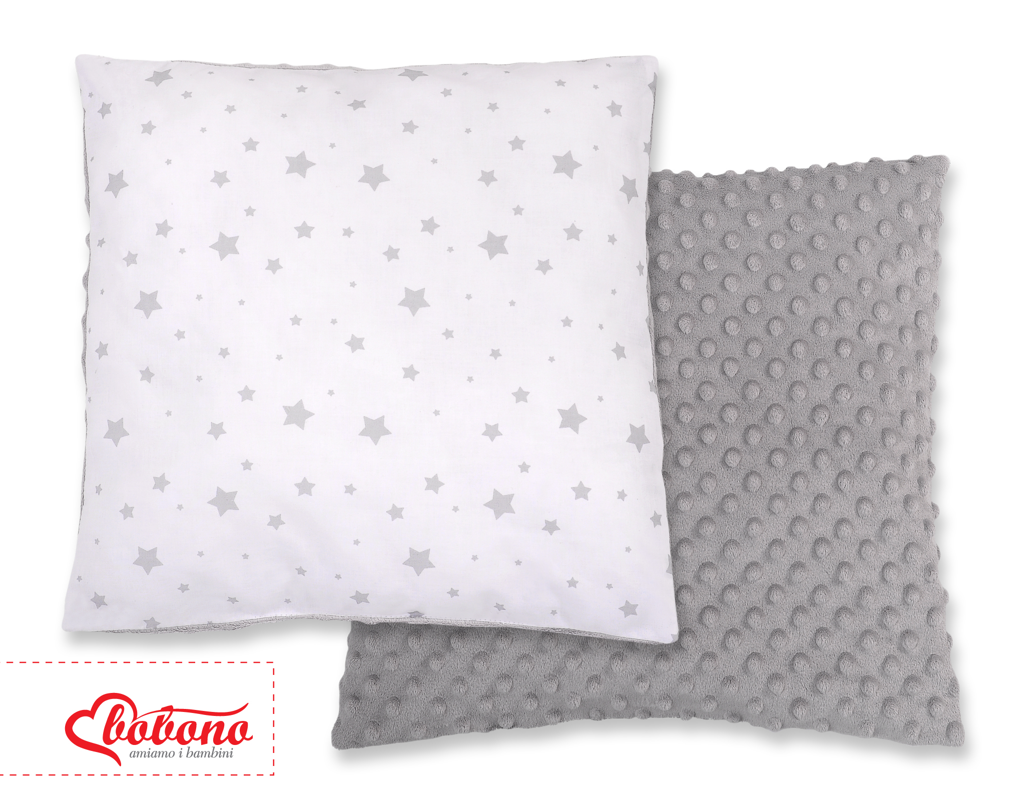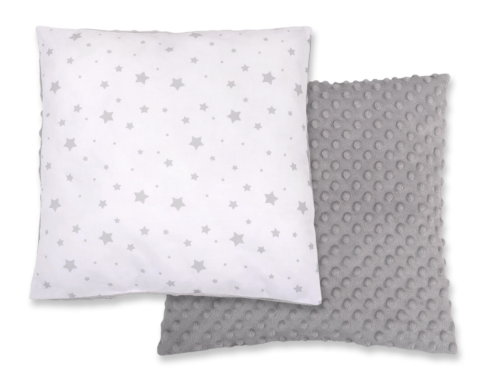 Stubenwagen » Bettwäsche für Babys » Bettwäsche für Babybett FUN & JOY » Doppelseitiges Kissen (minky) » Doppelseitiges Kissen - Mini Sternchen grau