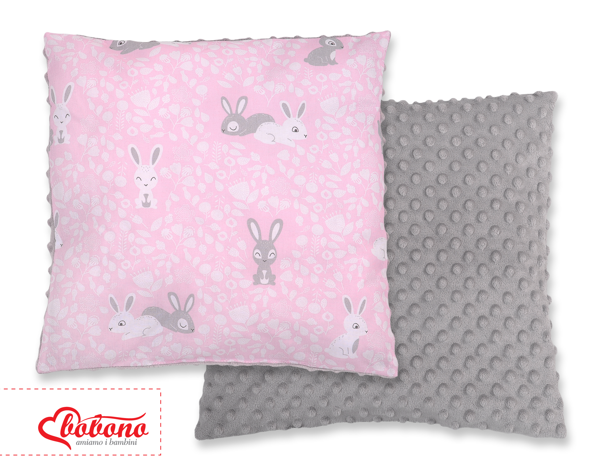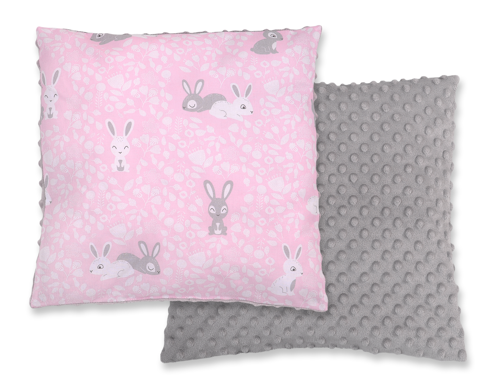 Stubenwagen » Bettwäsche für Babys » Bettwäsche für Babybett FUN & JOY » Doppelseitiges Kissen (minky) » Doppelseitiges Kissen - rosa Hasen