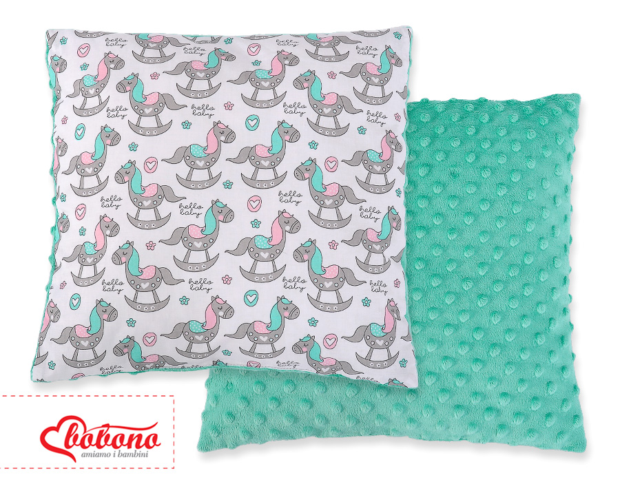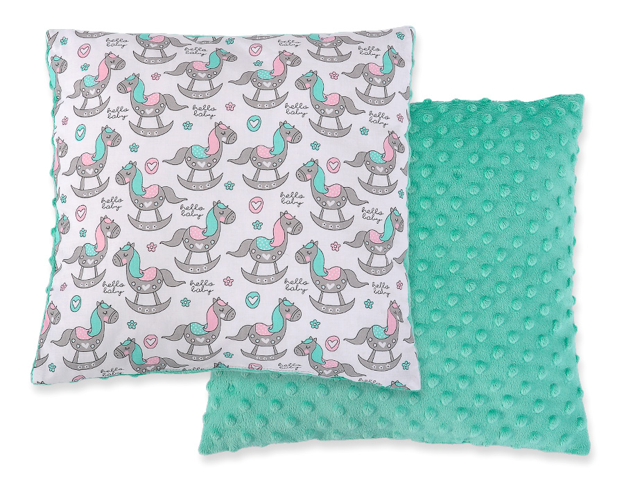 Stubenwagen » Bettwäsche für Babys » Bettwäsche für Babybett FUN & JOY » Doppelseitiges Kissen (minky) » Doppelseitiges Kissen - Schaukelpferde