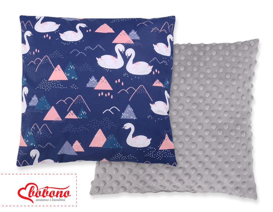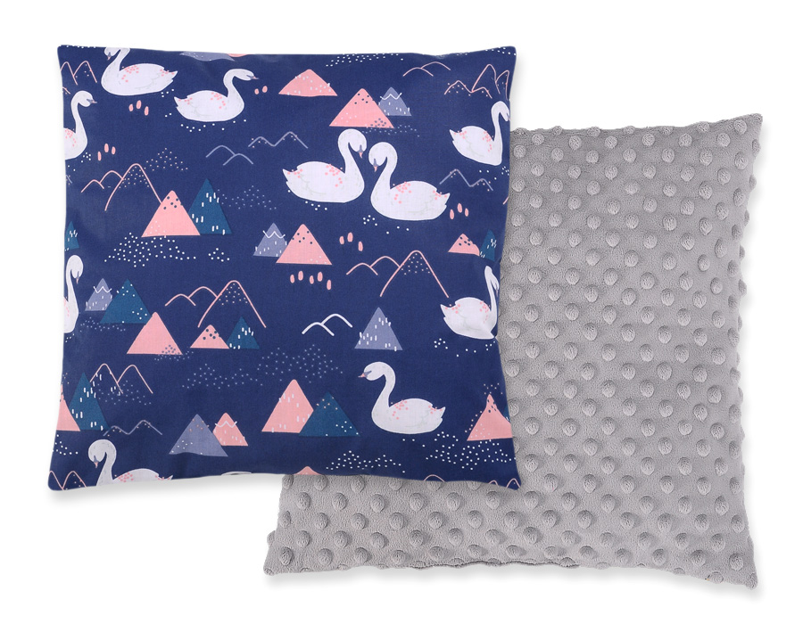 Stubenwagen » Bettwäsche für Babys » Bettwäsche für Babybett FUN & JOY » Doppelseitiges Kissen (minky) » Doppelseitiges Kissen - Schwäne dunkelblau