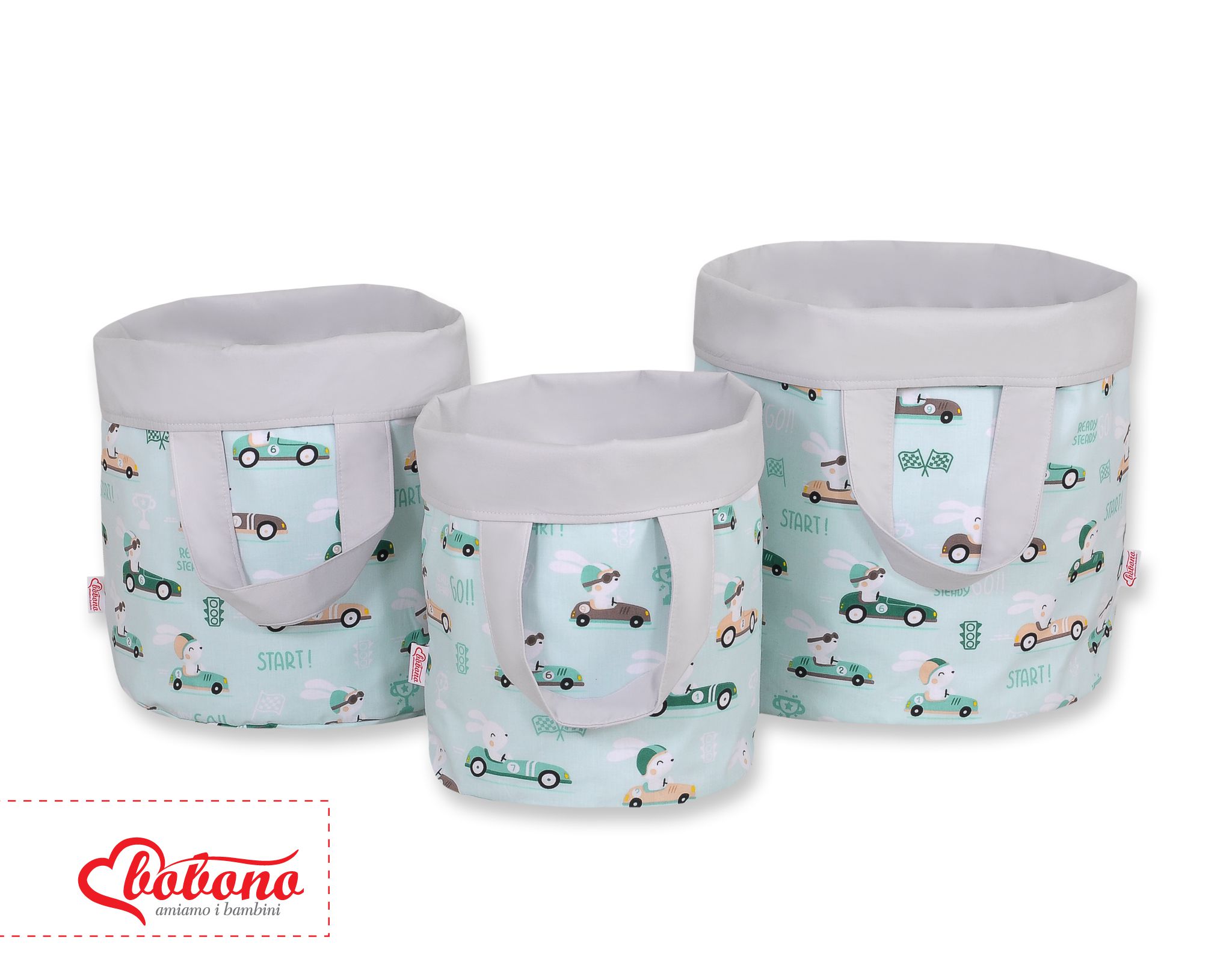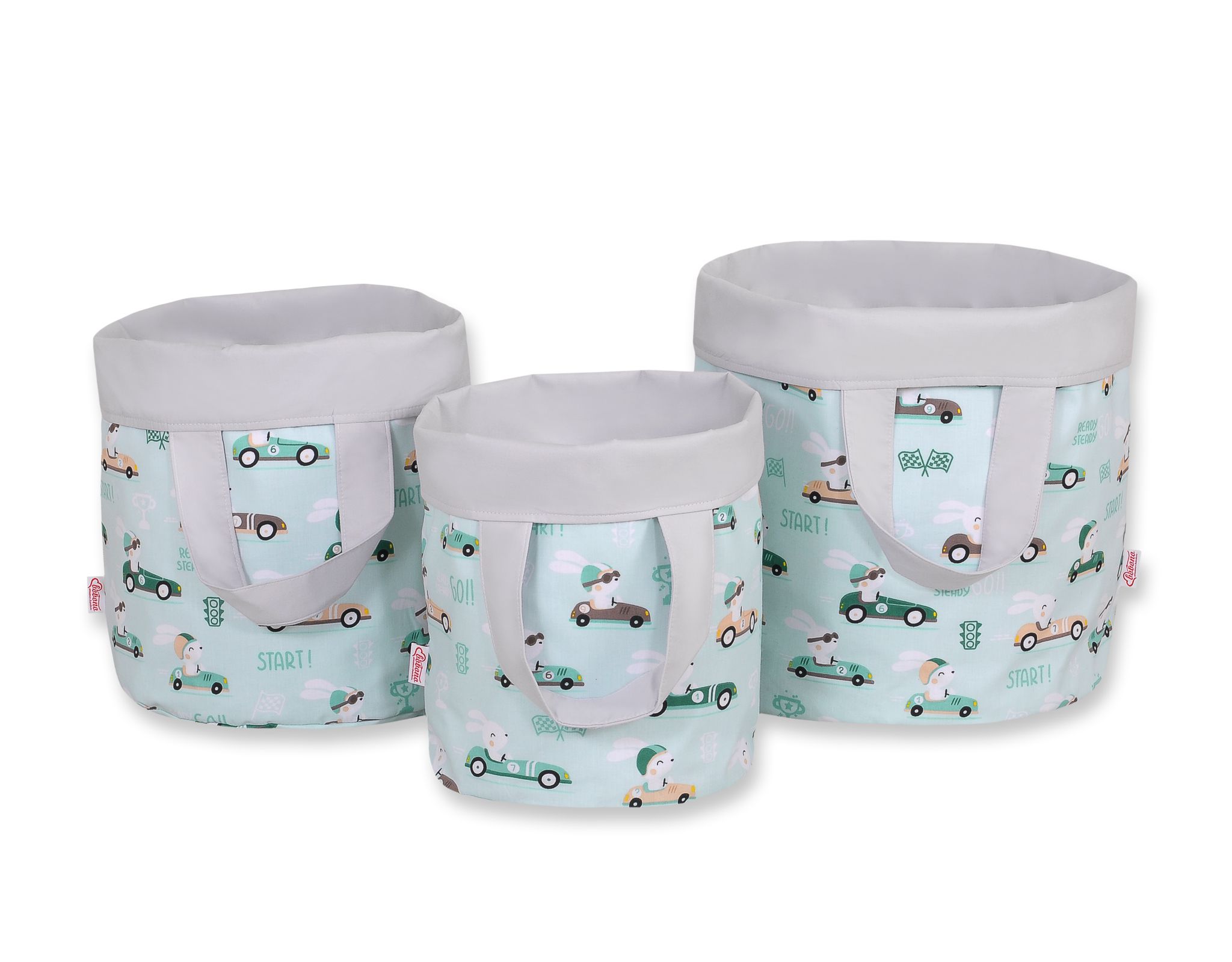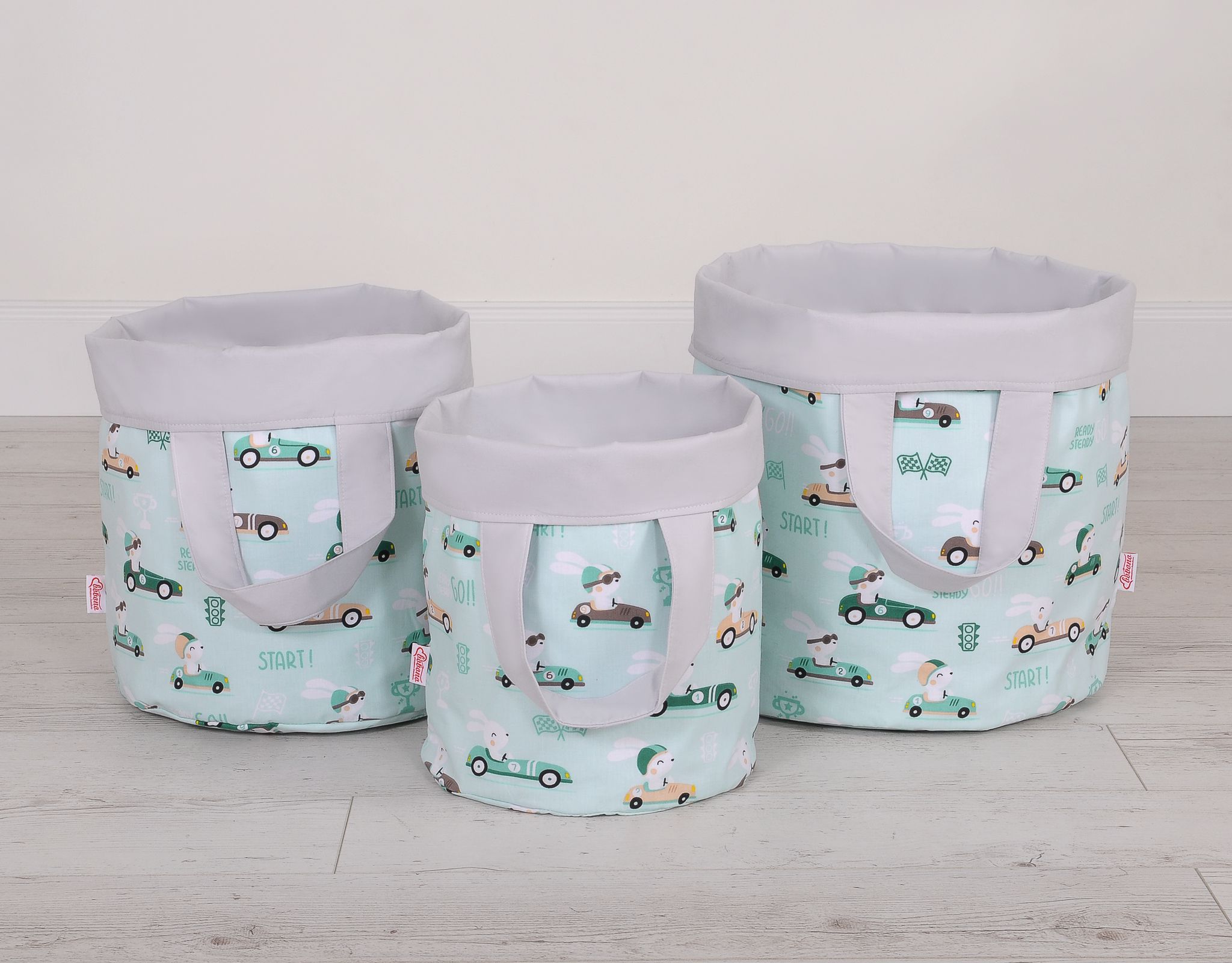 Stubenwagen » Spielzeug Kuscheltiere » Doppelseitiger Spielzeugkorb » Doppelseitiger Spielzeugkorb L » Double-sided toy basket L - minze Hasen/grau