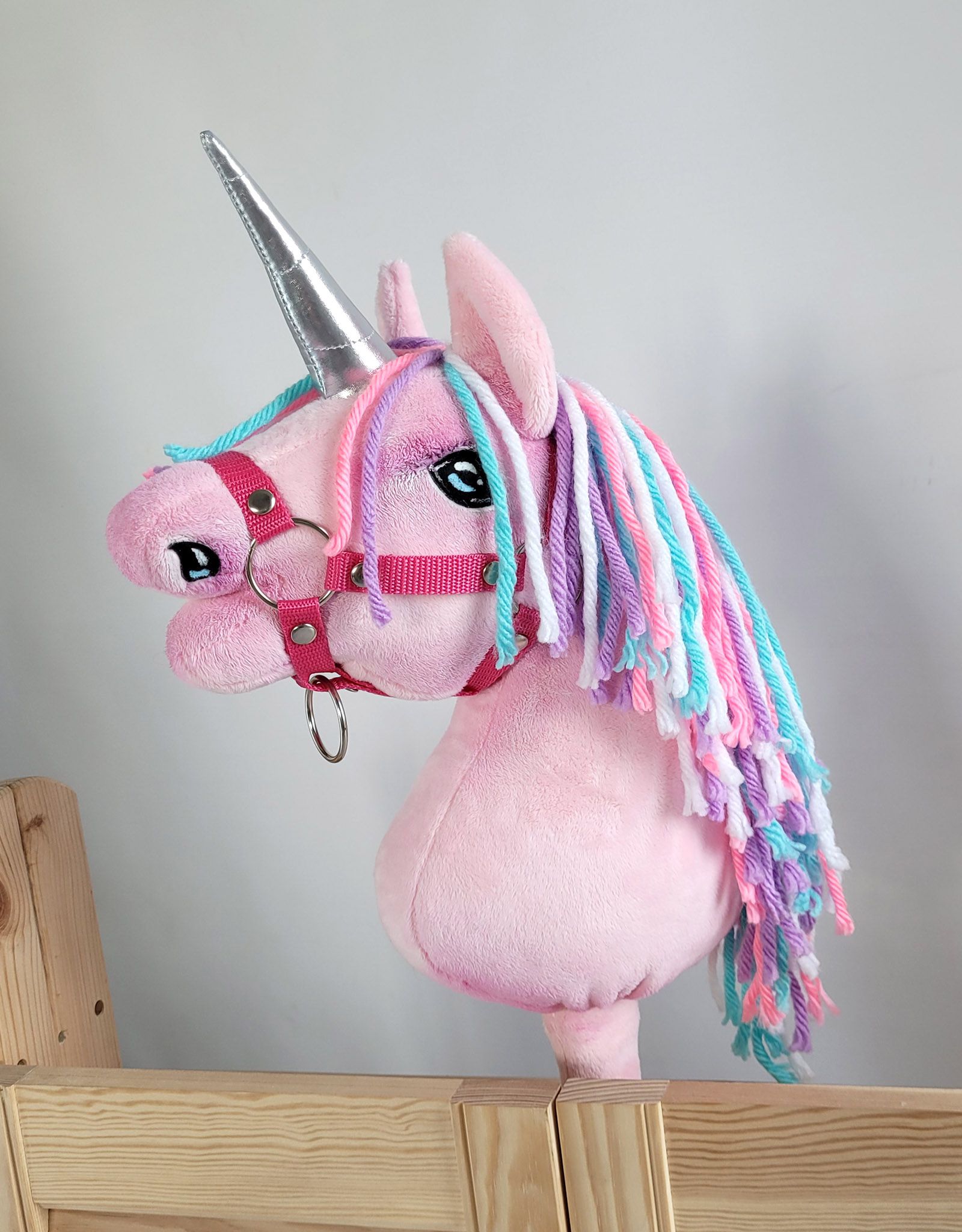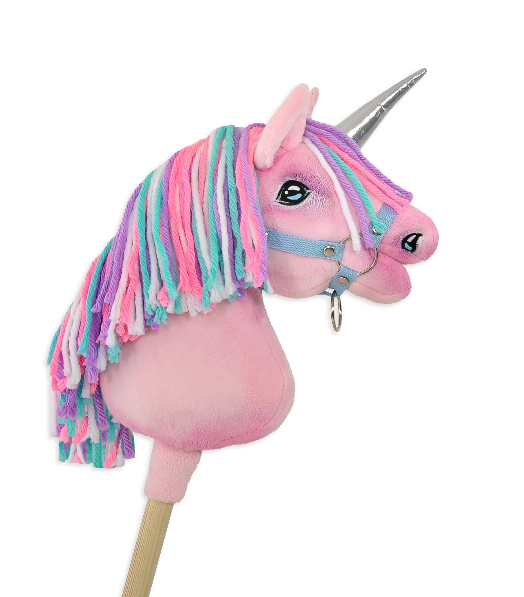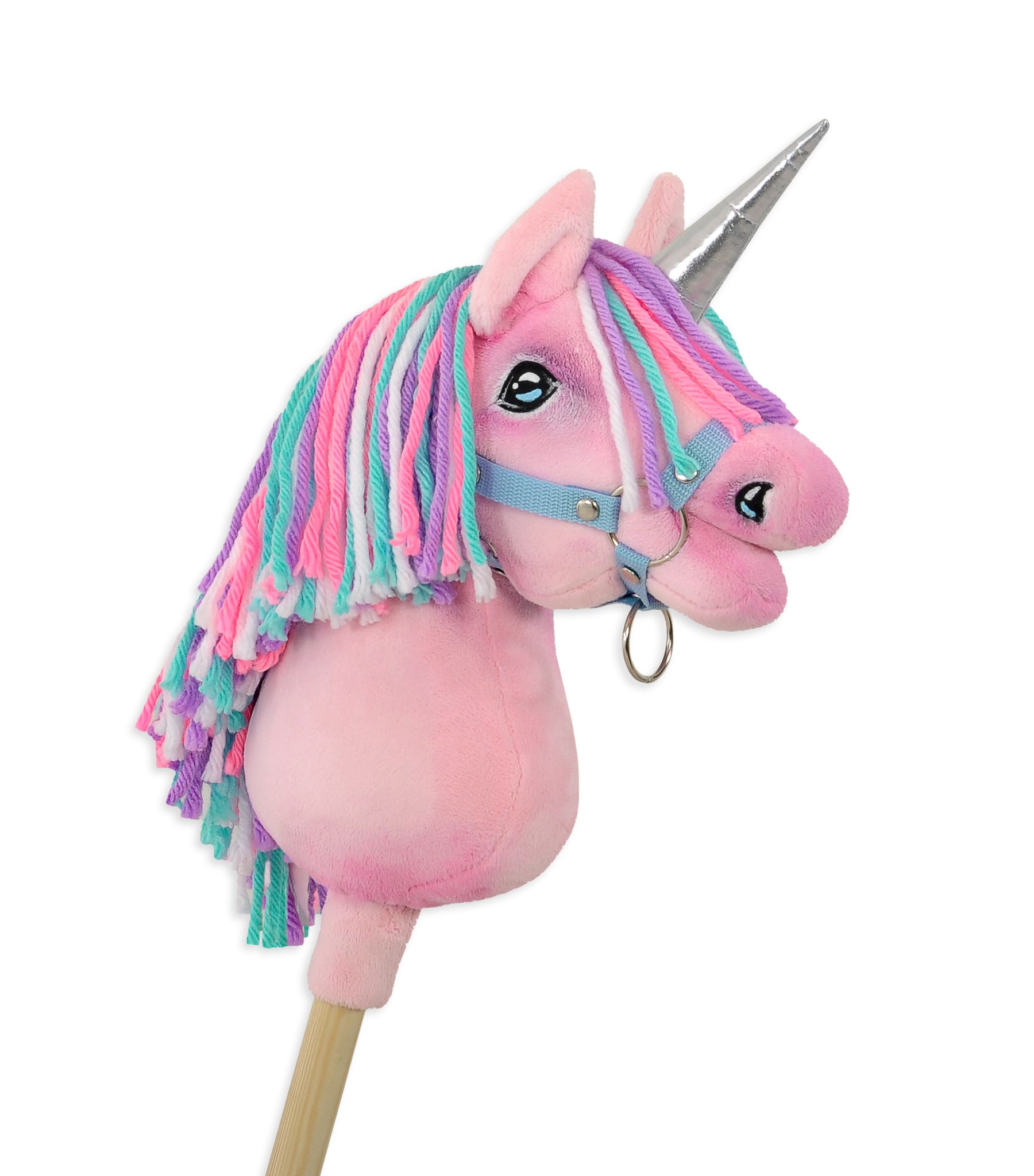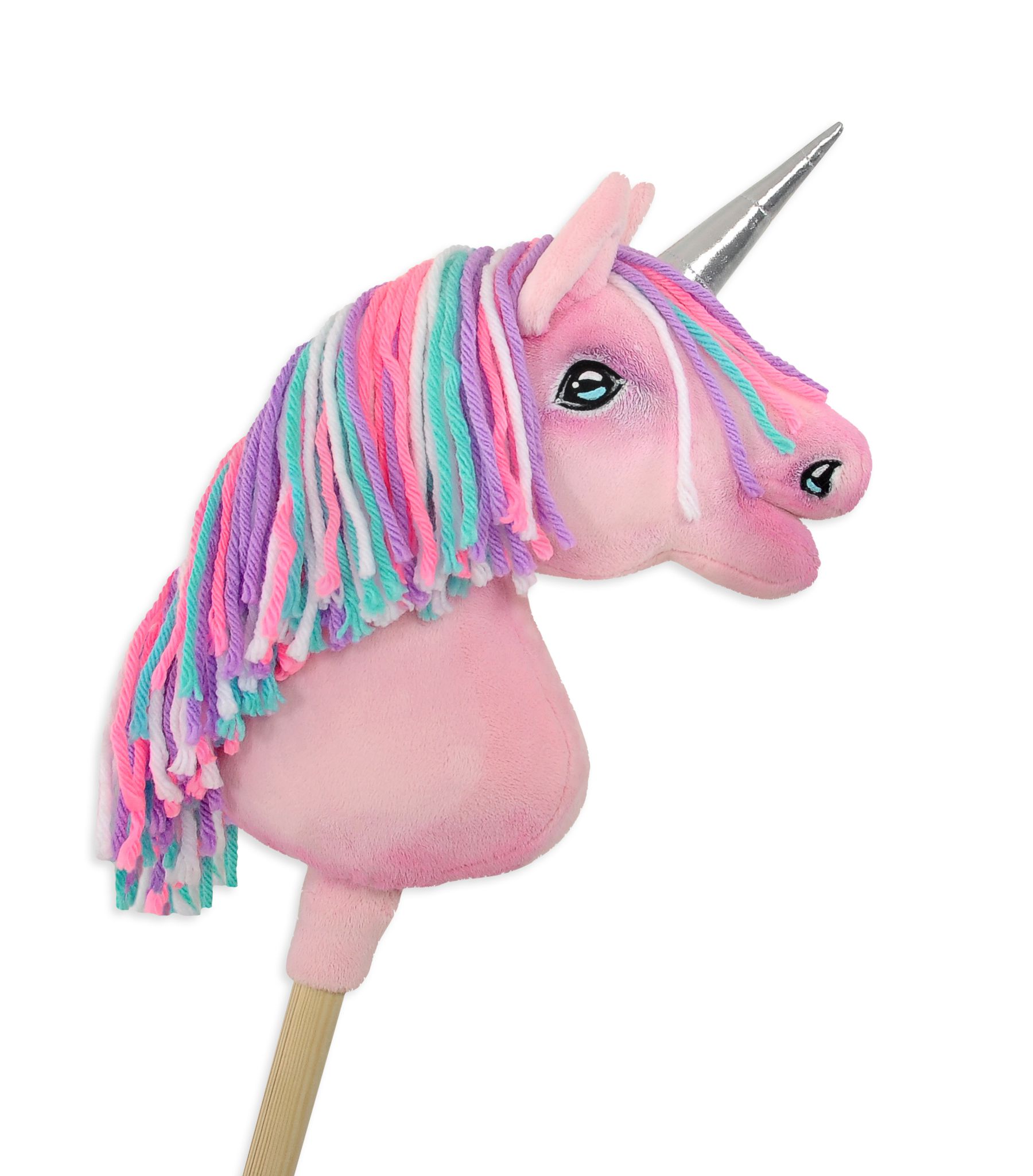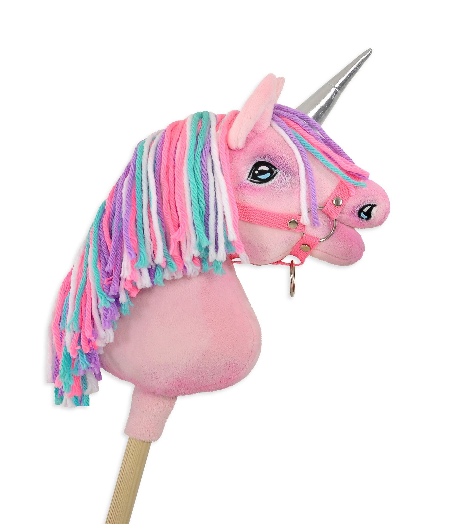 Einhorn Steckenpferd mit bunter Mähne - rosa A4 bunt