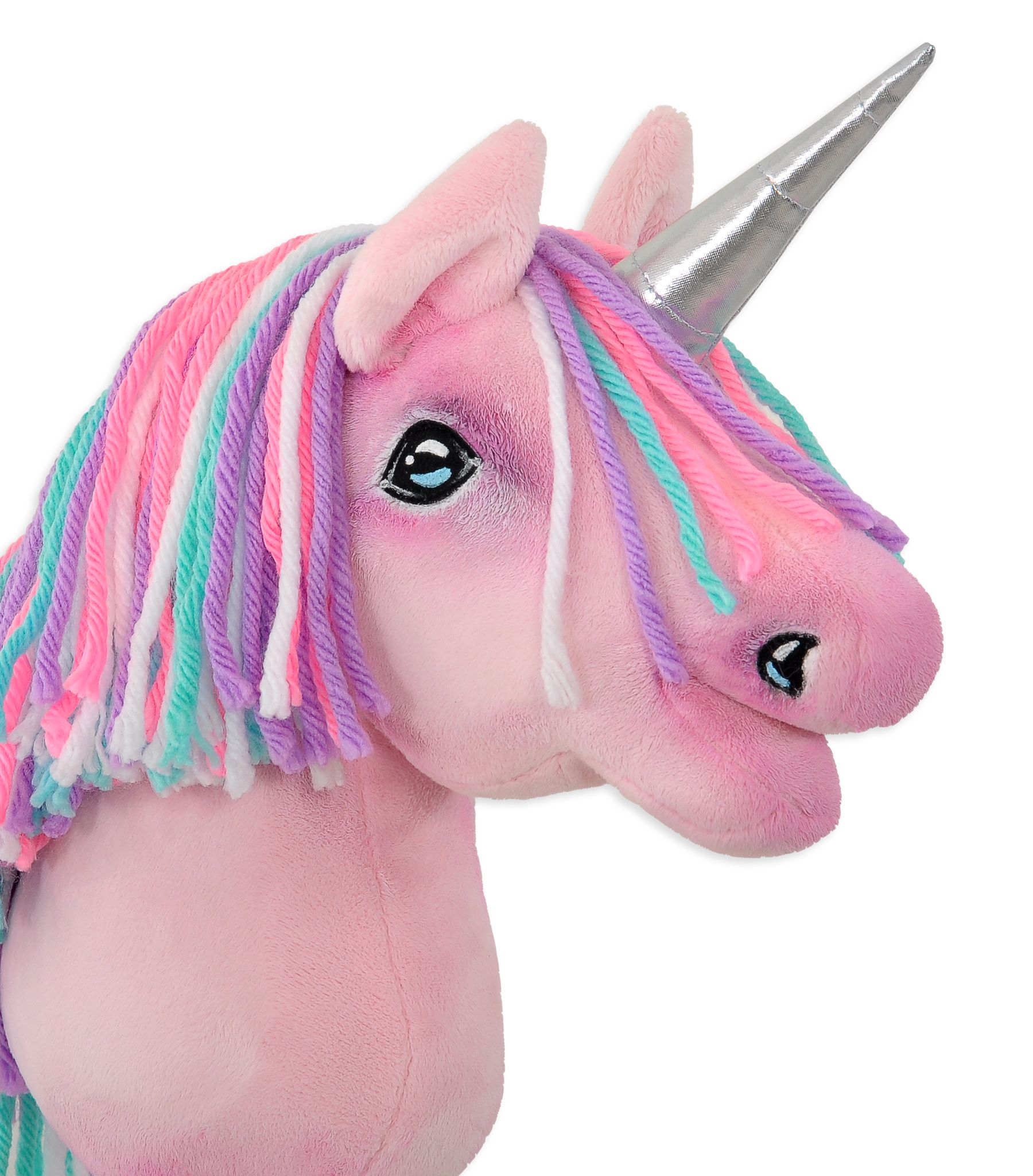 Ein Rosafarbenes Einhorn mit einer langen, farbenfrohen und weichen Mähne, die sich perfekt für schöne Frisuren eignet.