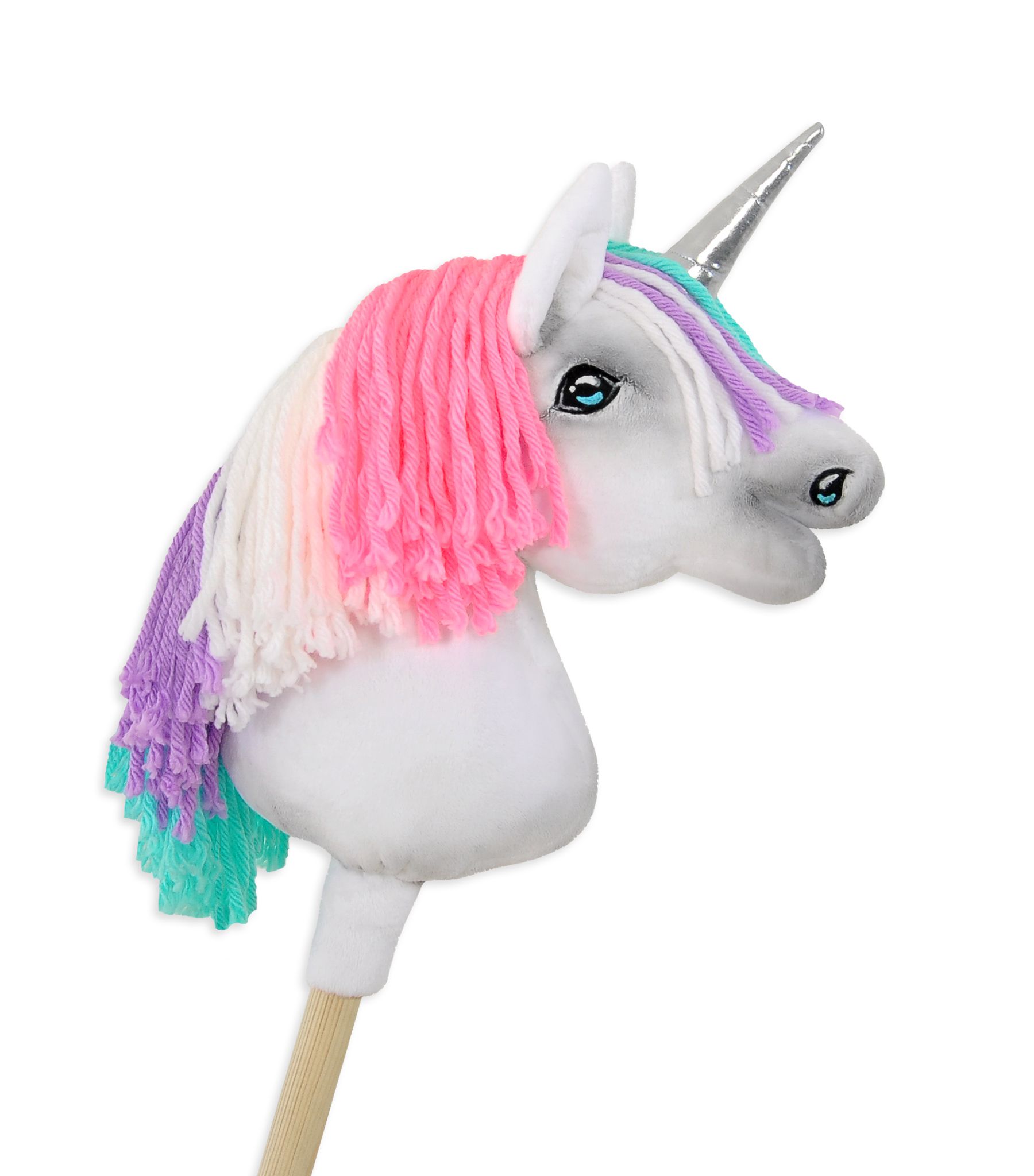 Das Einhorn ist eine der beliebtesten Figuren von Märchen. Das Plüsch-Stabpferd ist ein großer Spaß und eine tolle Beschäftigung für Kinder zu Hause und im Freien. Perfekt zum Theaterspielen. Unsere Einhörner werden in Handarbeit und mit viel Liebe zum Detail hergestellt. Wir verwenden die hochwertigsten zertifizierten Rohstoffe mit Oko-Tex Standard-Zertifikat - die gleichen, die wir auch für unsere anderen Kinderprodukte verwenden. Für großen und sicheren Spielspaß!