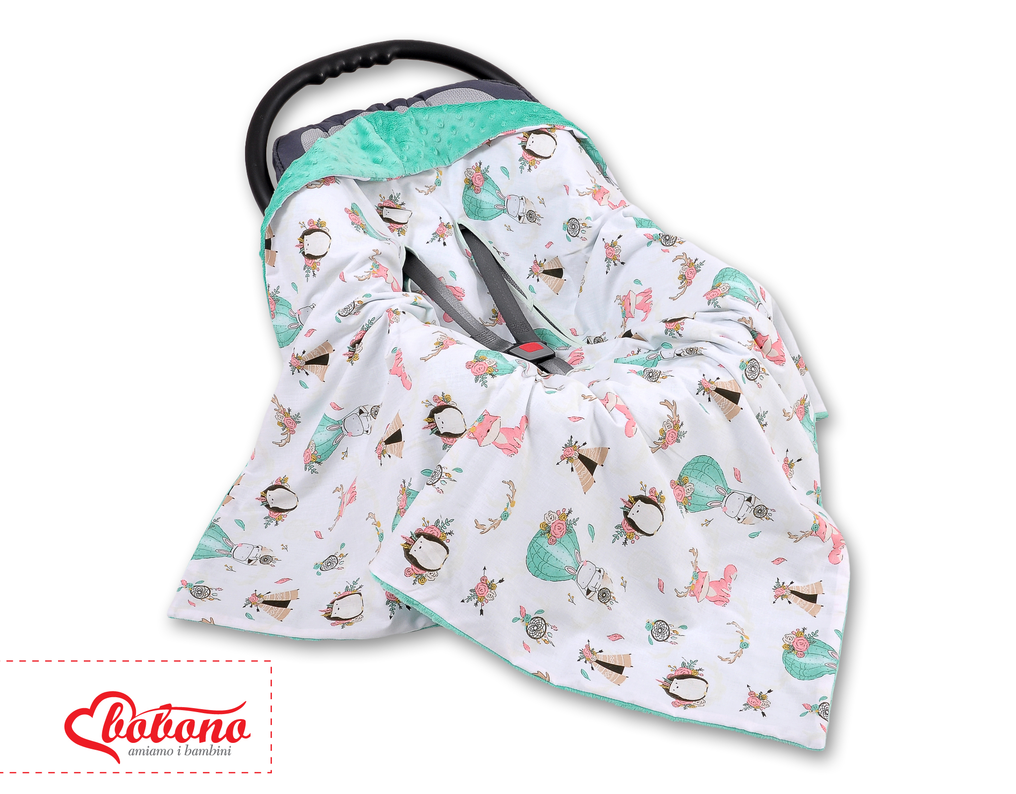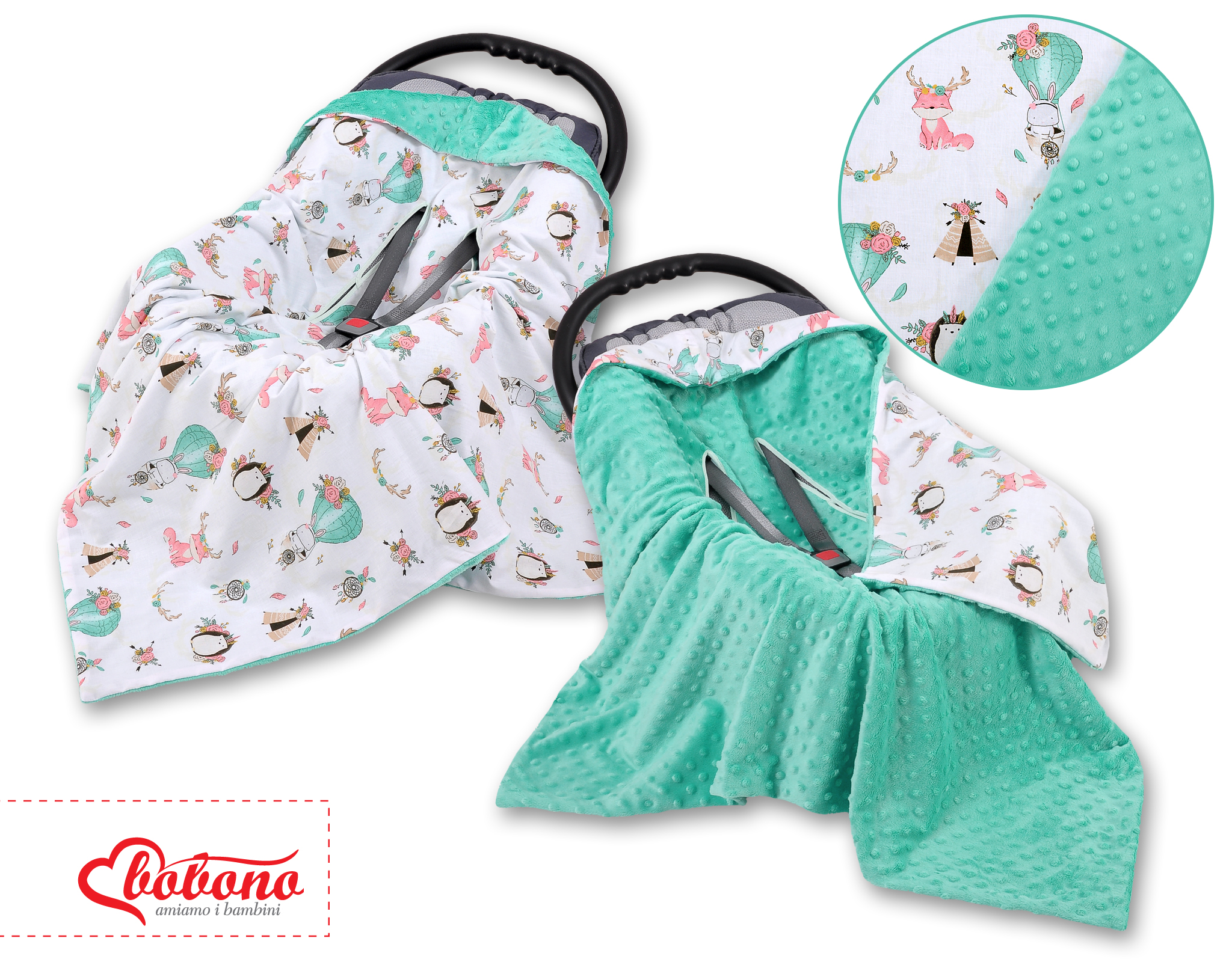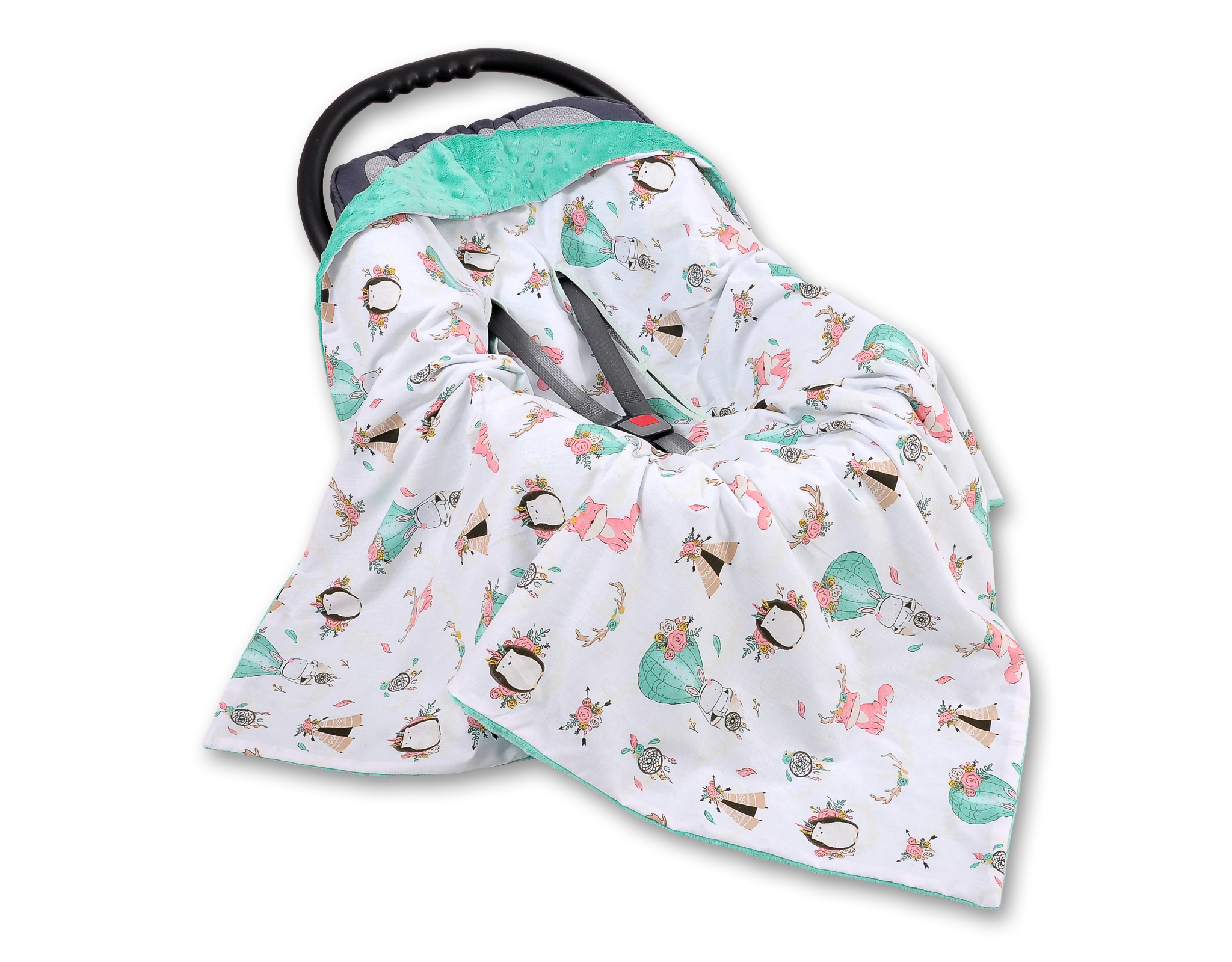 This great warm and fluffy Double- sided car seat blanket. Perfectly protects your child from cold.