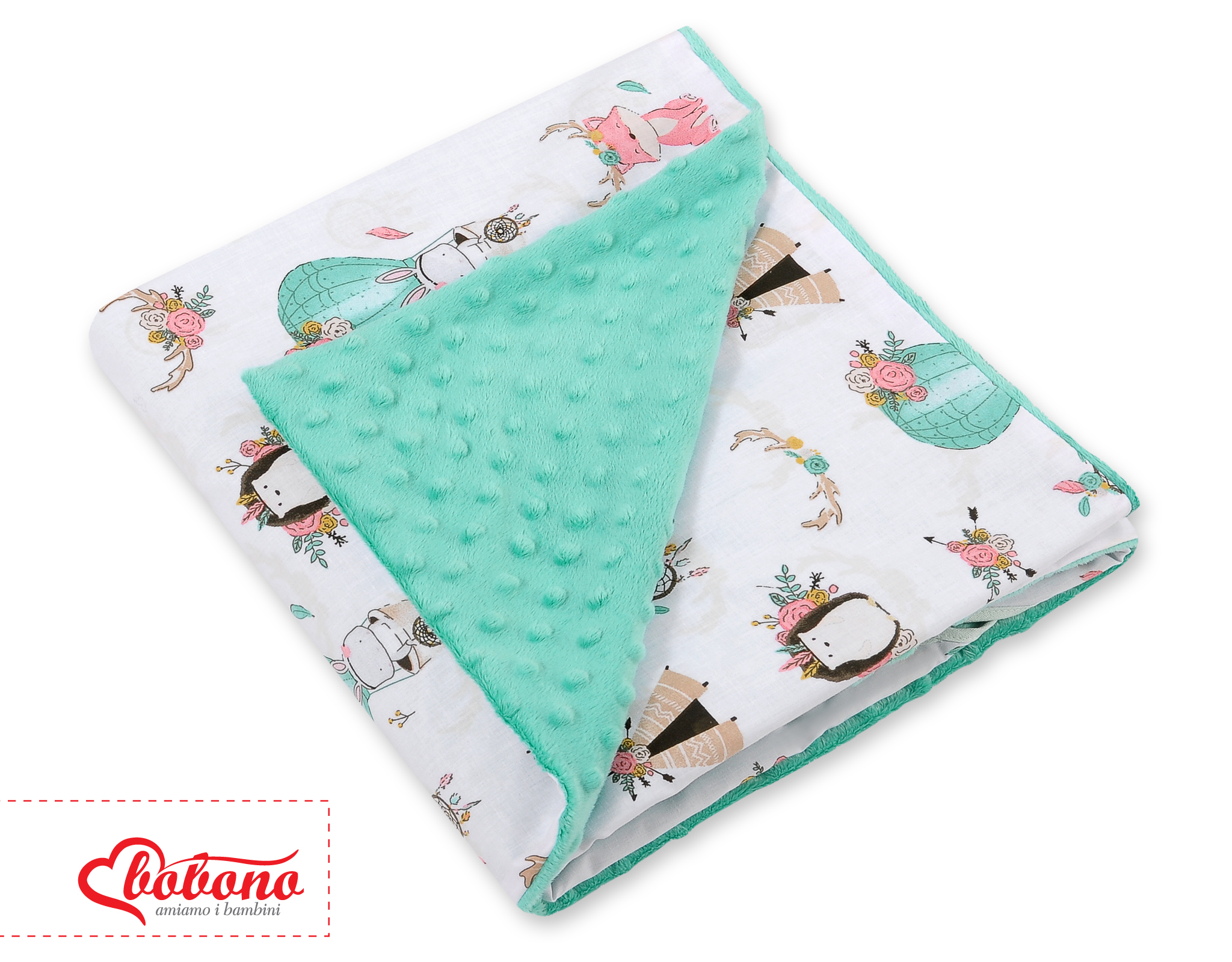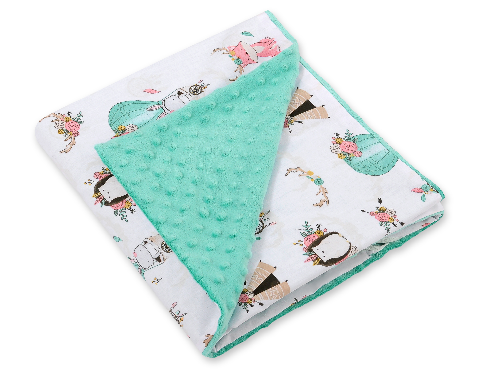 - double-sided- Made of soft plush fabric (minky) and colorful 100% cotton.