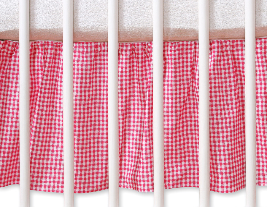 Stubenwagen » Bettwäsche für Babys » Bettwäsche für Babybett HERZEN » Fest gefaltete Rüsche für Kinderbett 120cm » Fest gefaltete Rüsche 120x60cm - Hängende Herzen dunkel rosa kariert