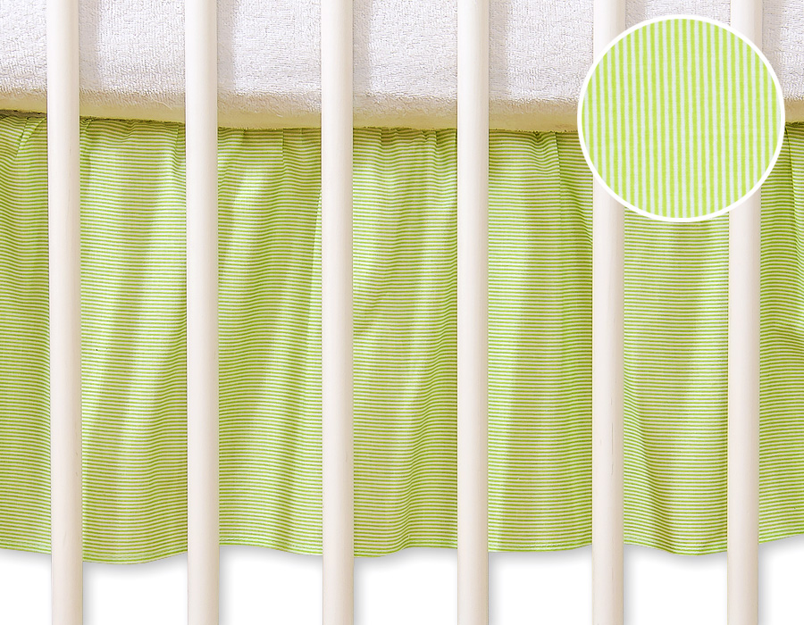 Deckt den Raum zwischen der Schublade und dem Boden des Kinderbett. Die Rüsche können Sie unterhalb der Matratze befestigen, um das Bettchen zu verschönern.