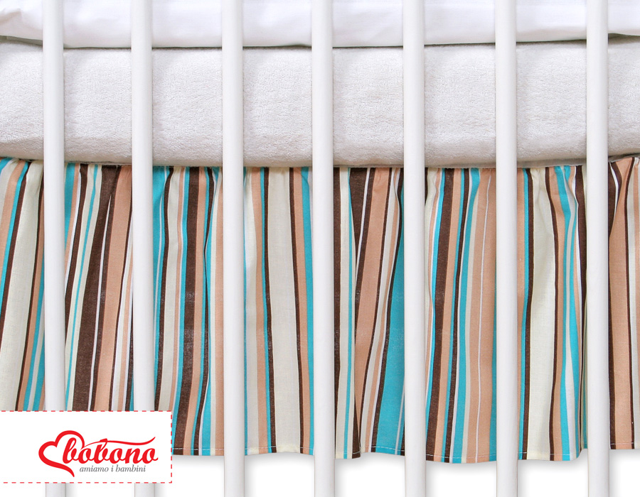 Fest gefaltete Rüsche für Babybett 140x70cm - Hängende Herzen braun gestreiftFest gefaltete Rüsche für Babybett 140x70cm - Hängende Herzen braun gestreift