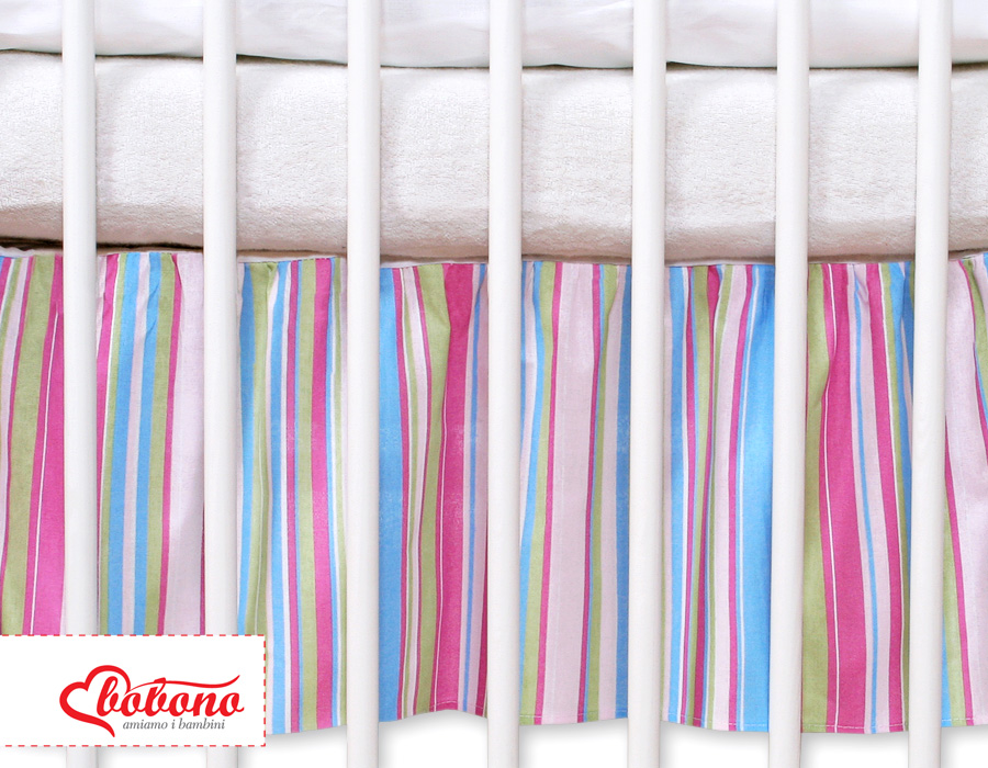 Deckt den Raum zwischen der Schublade und dem Boden des Kinderbett. Die Rüsche können Sie unterhalb der Matratze befestigen, um das Bettchen zu verschönern.