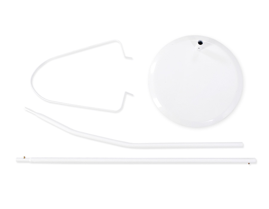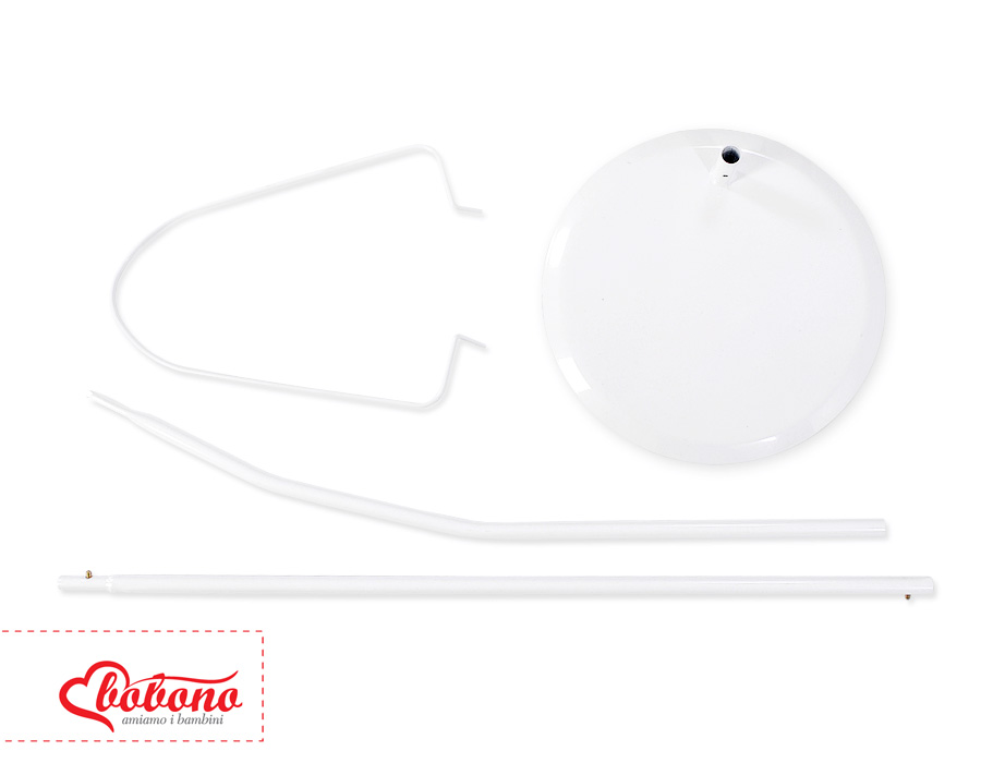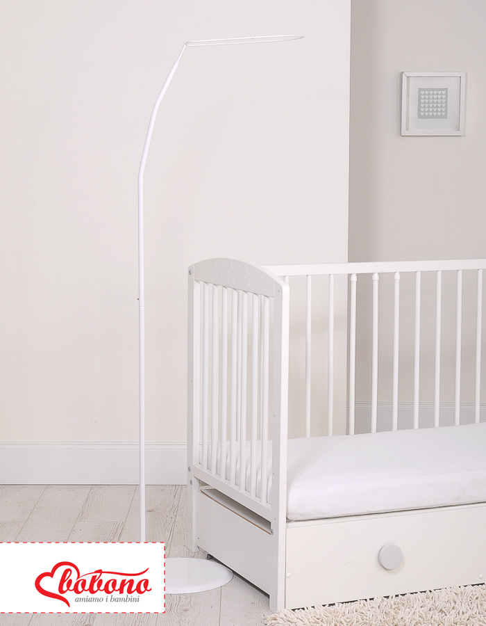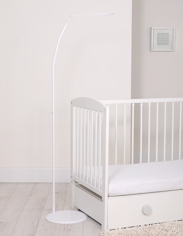 Freistehende Himmelstange Die praktische, freistehende Himmelstange kann beim Kinderbett gestellt werden und muss nicht angeschraubt sein. Schnelle Montage. Sie besteht aus zwei Röhrchen, die mit einem ?Druckknopf-Stöpsel? verbunden sind. Das obere Röhrchen verbindet sich mit einem ovalen Draht, an den der Betthimmel angebracht werden kann. Das untere Röhrchen ist mit einem runden Fuß verbunden (auch dank einem Druckknopf-Stöpsel). Der Betthimmel kann als Schutz von Sonne oder Licht dienen. Er ist auch ein Dekorationselement im Kinderzimmer. Himmelstange Freistehende