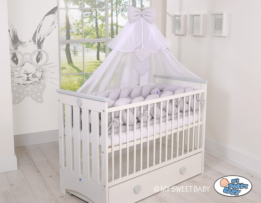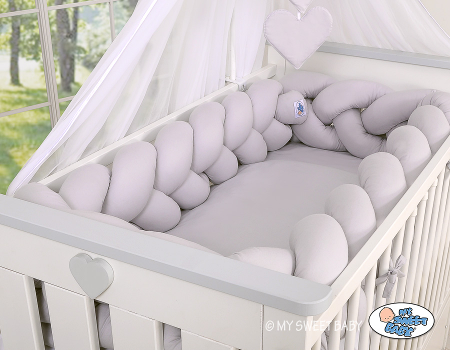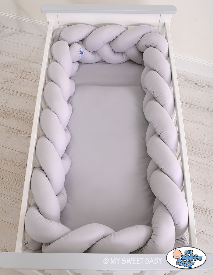 Geflochtene Bettschlange für Babybett Bettumrandung XXL - grau