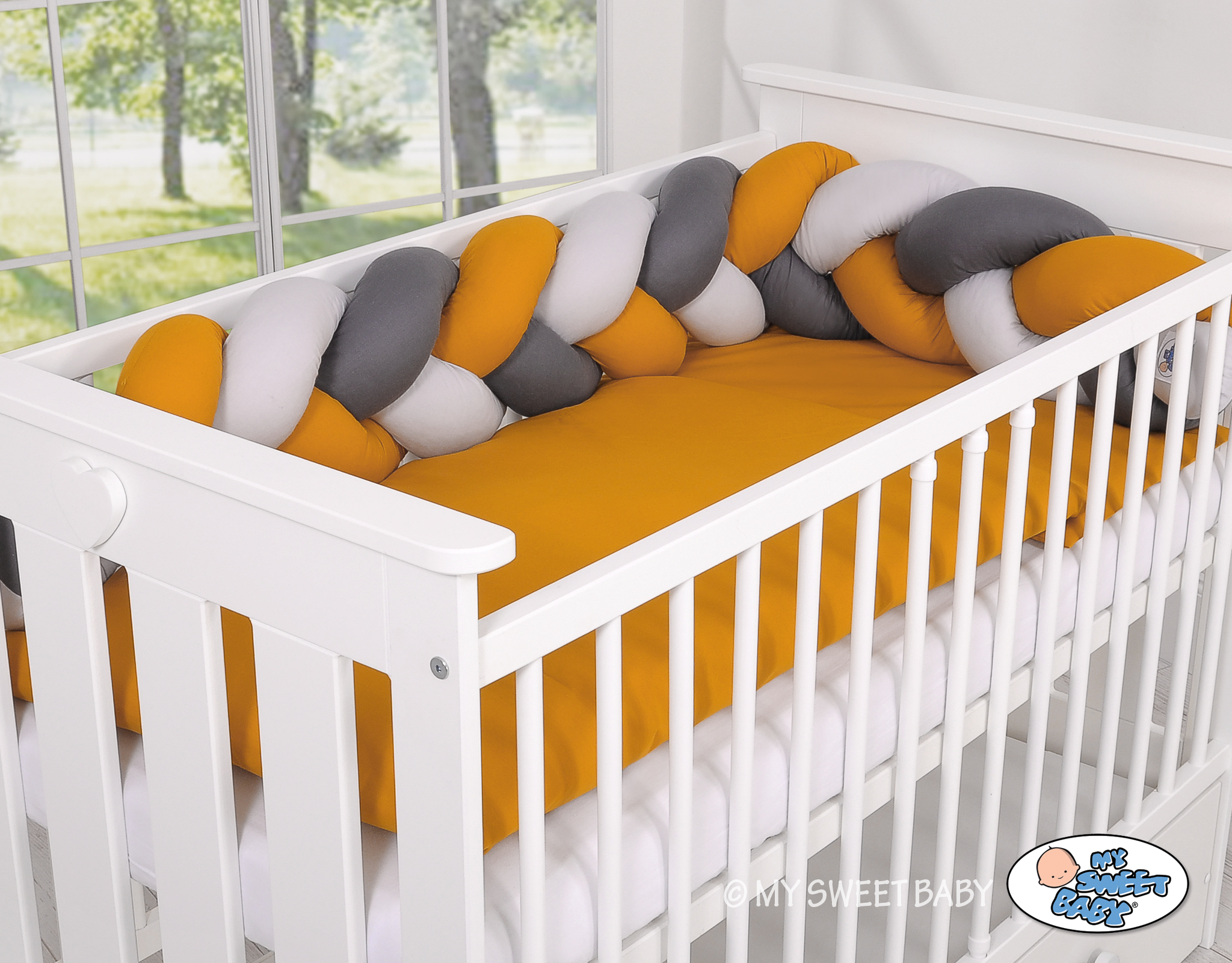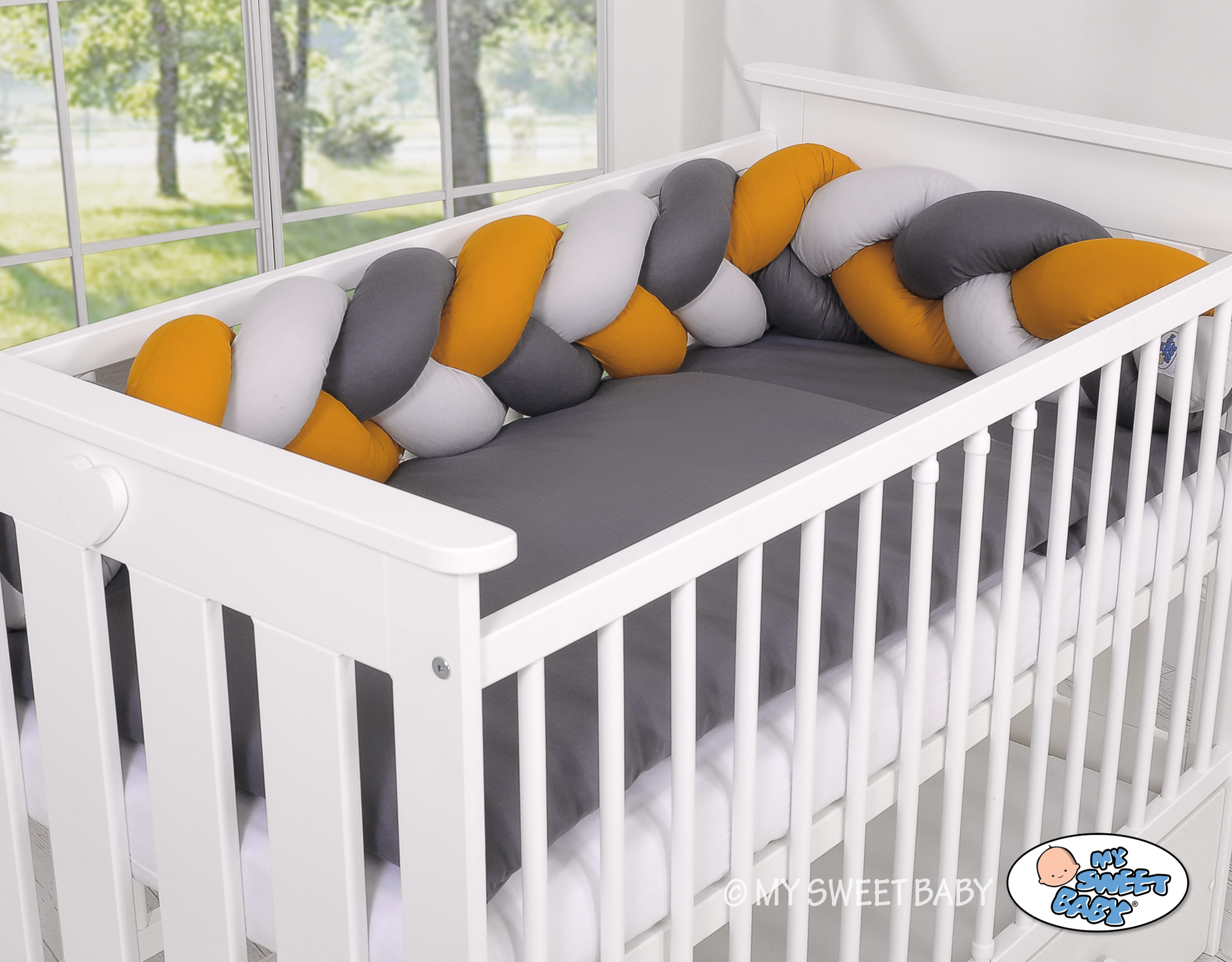 Geflochtene Bettschlange für Babybett - grau-honiggelb-anthrazit