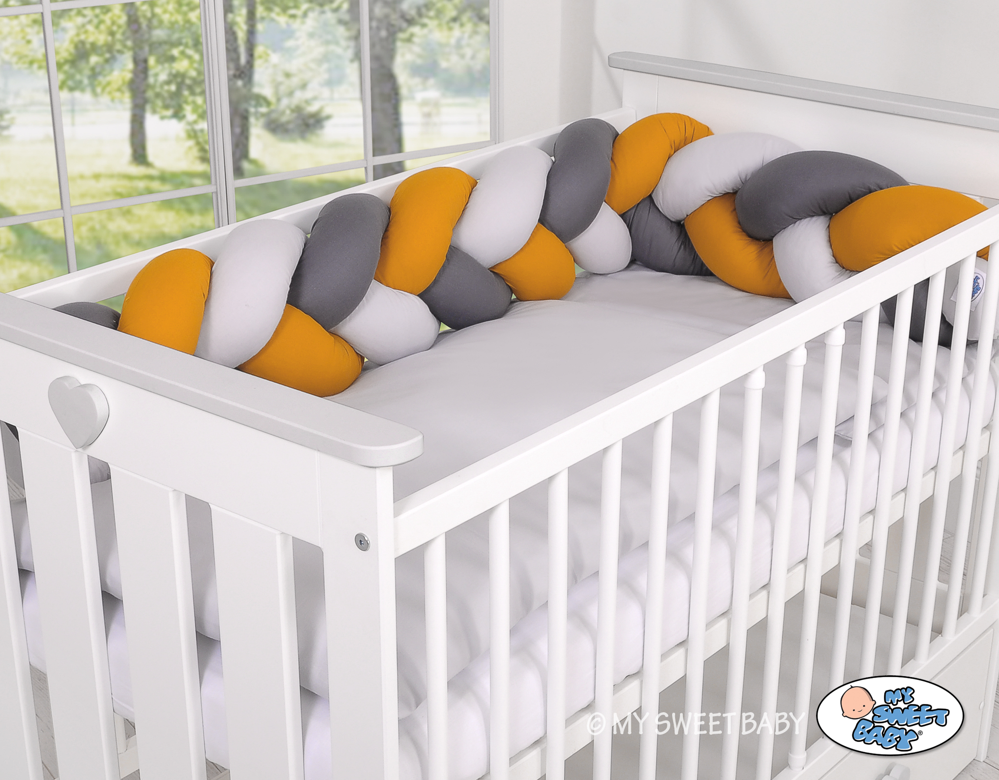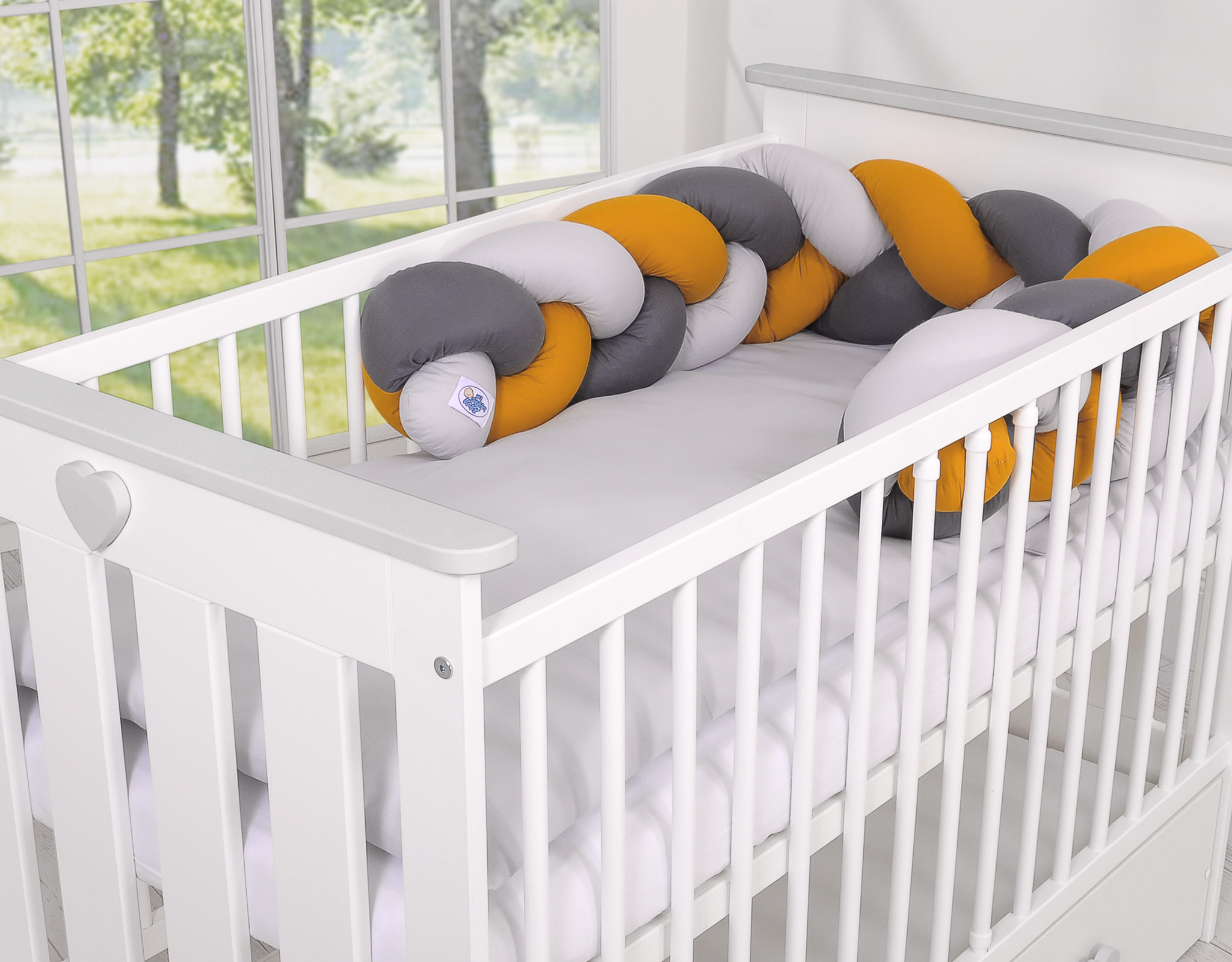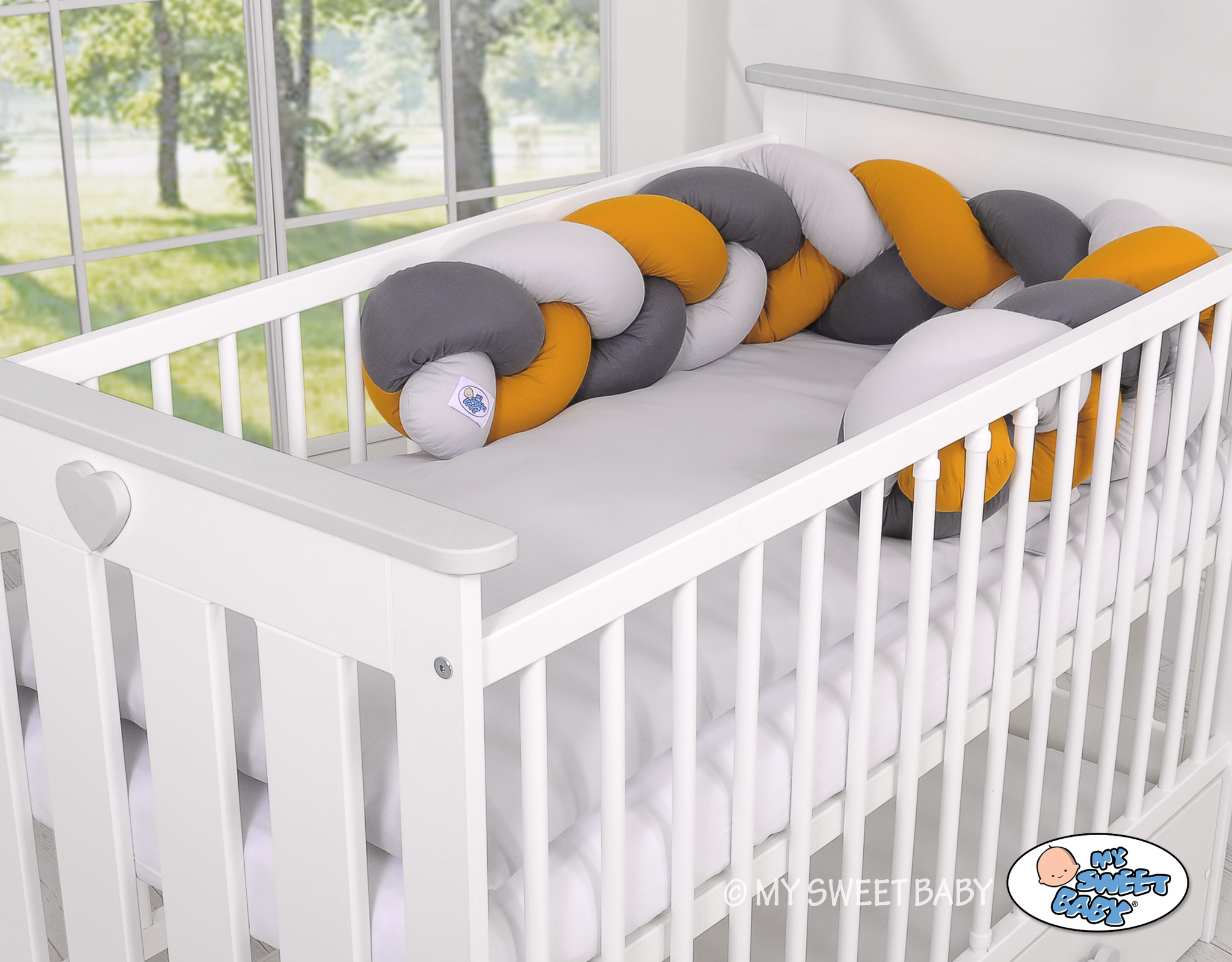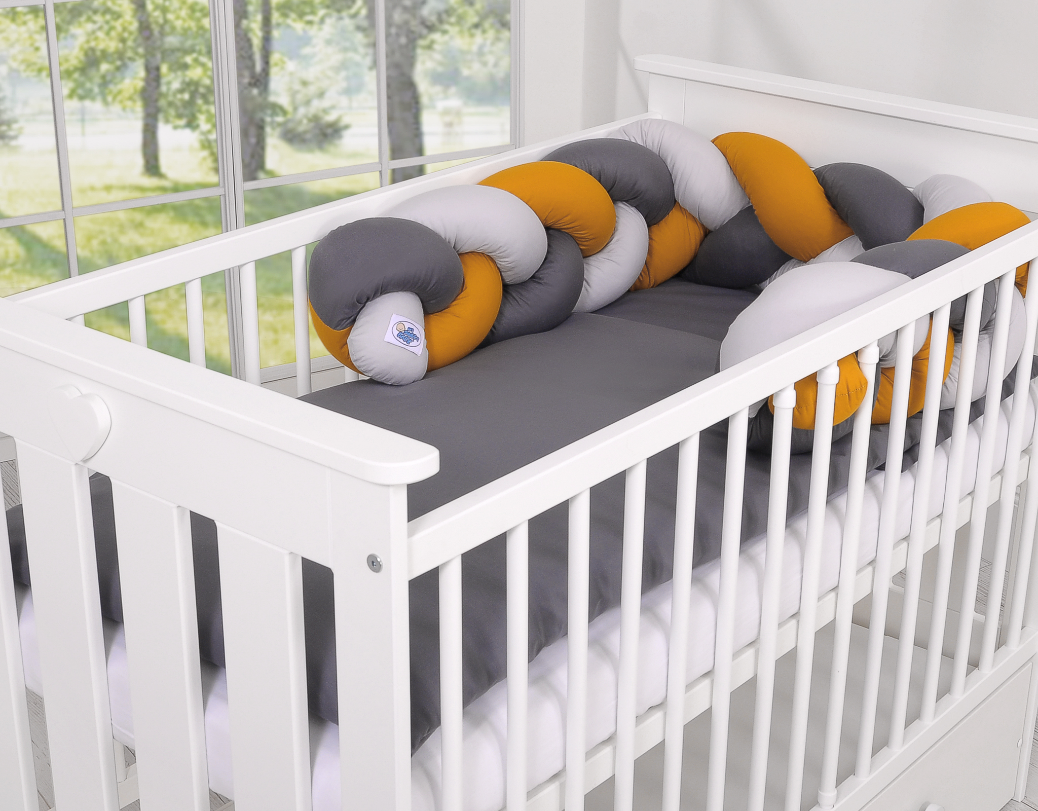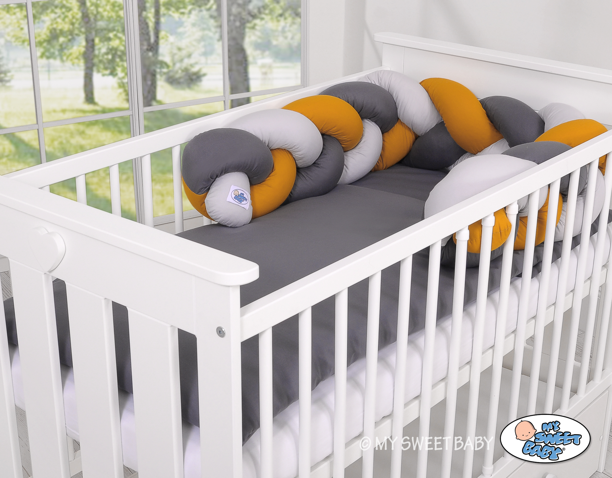 Grau-honiggelb-anthrazit Babybett Bettschlange Geflochtene