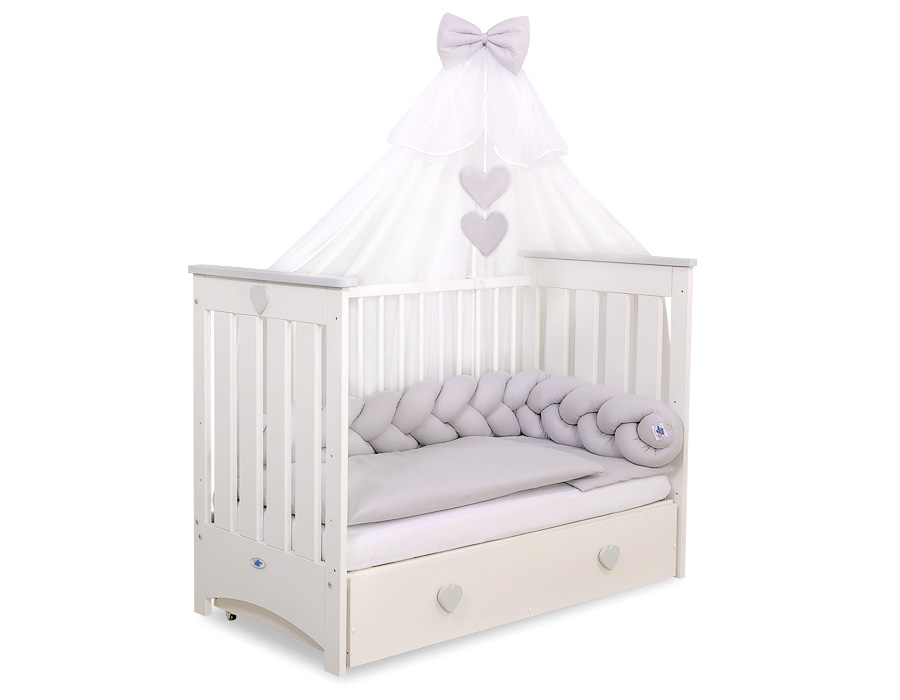 Das moderne Design sieht nicht nur schön aus, es schützt vor allen das Baby vor Zusammenstößen mit den Kinderbettstäbchen.