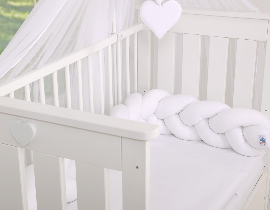 Das moderne Design sieht nicht nur schön aus, es schützt vor allen das Baby vor Zusammenstößen mit den Kinderbettstäbchen.