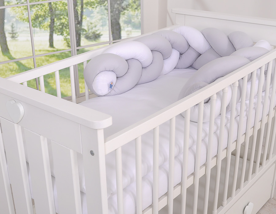 Das moderne Design sieht nicht nur schön aus, es schützt vor allen das Baby vor Zusammenstößen mit den Kinderbettstäbchen.