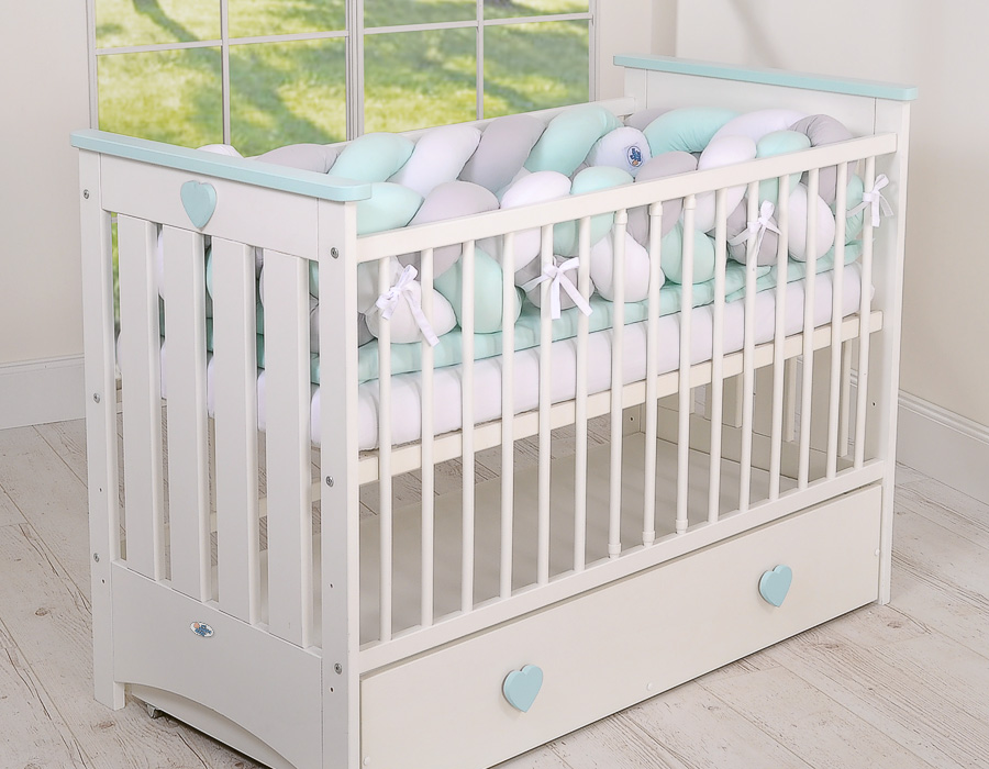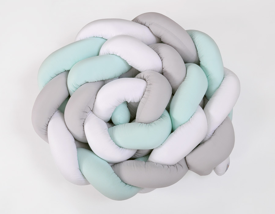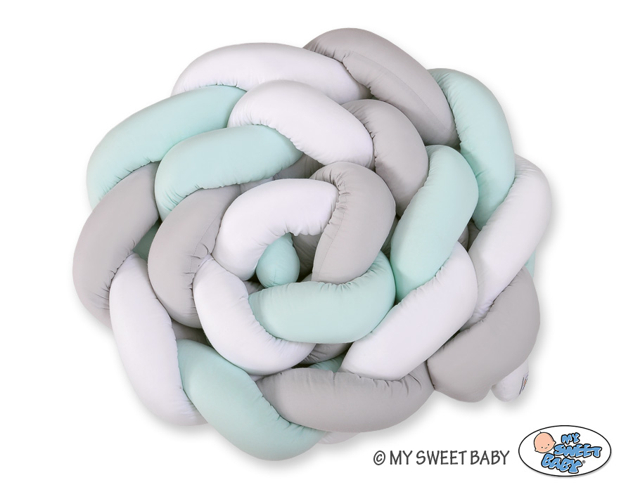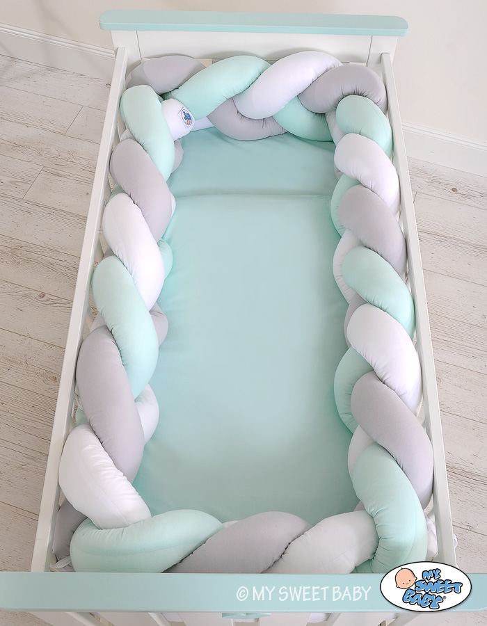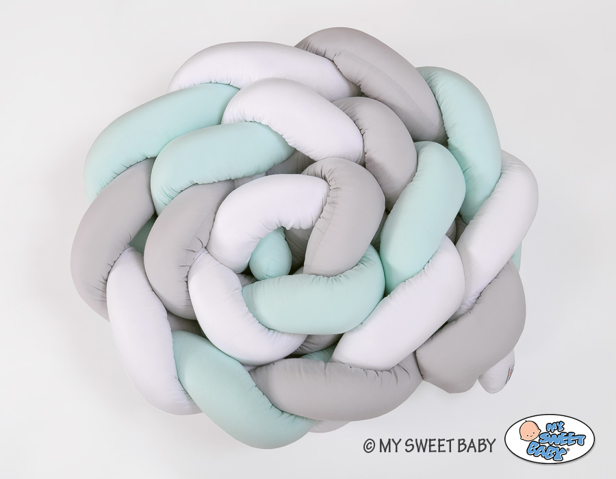 Geflochtene Bettschlange für Babybett XXL Extra groß - weiß - grau - minze