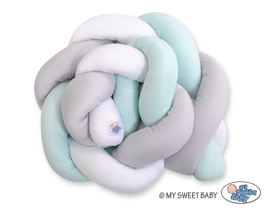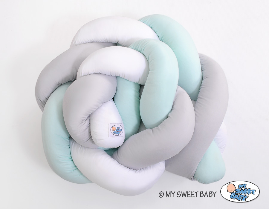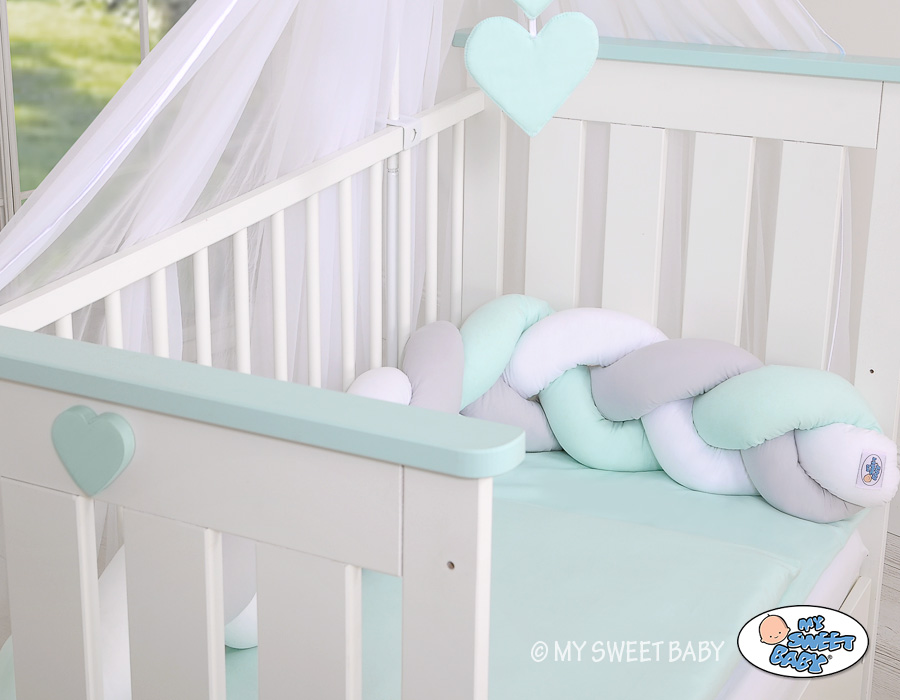 Stubenwagen » Geflochtene Kollektion » Geflochtene Bettschlange für Babybett » Geflochtene Bettschlange Zopfschlange für Babybett - weiß - grau-minze