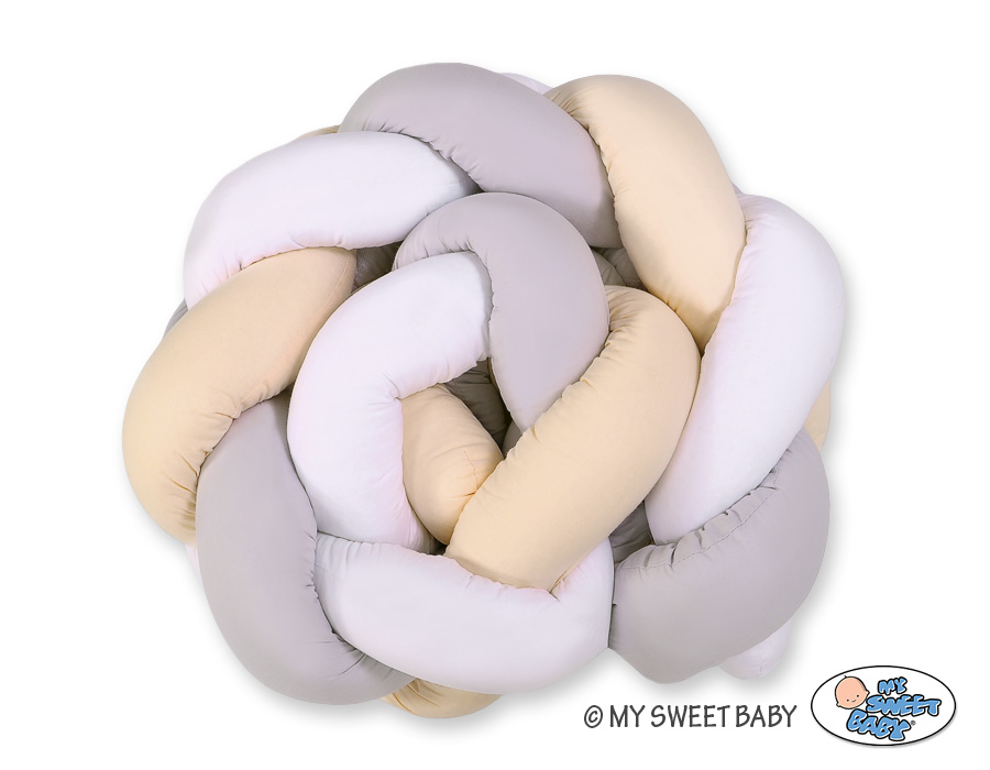 Geflochtene Stoßfänger Bettschlange für Babybett - weiß-grau-beige