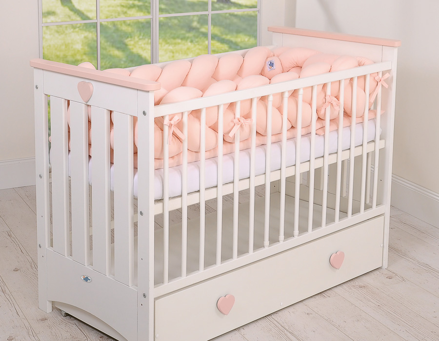 Das moderne Design sieht nicht nur schön aus, es schützt vor allen das Baby vor Zusammenstößen mit den Kinderbettstäbchen.