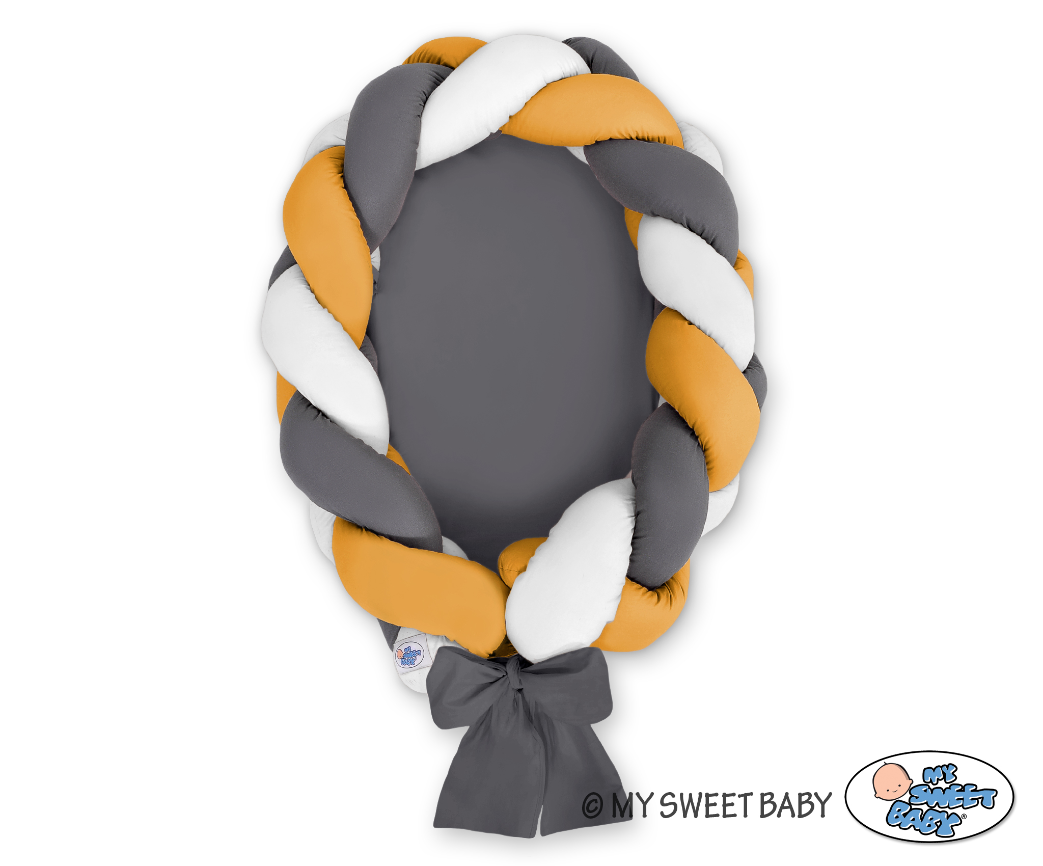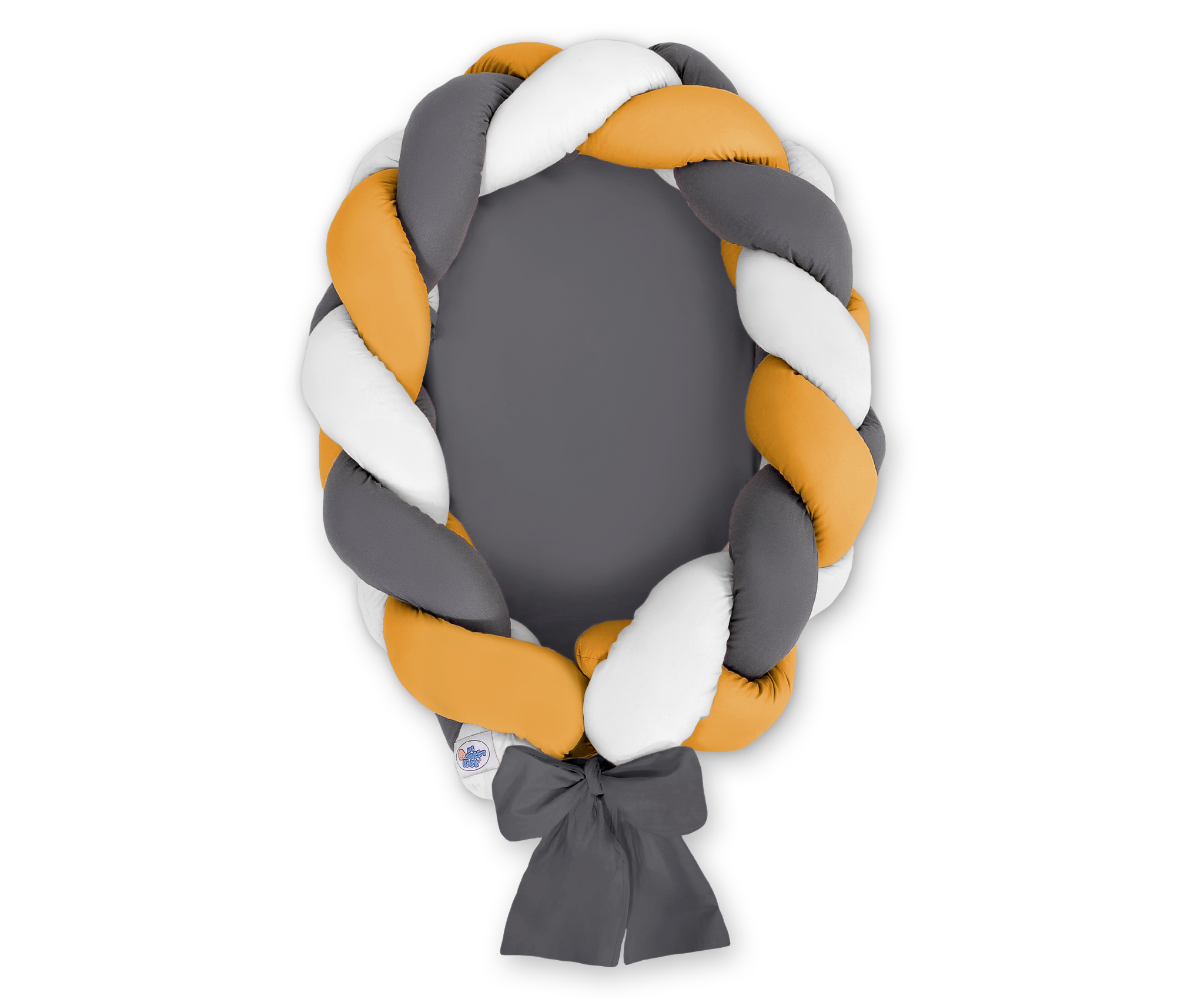 Geflochtenes Babykokon 2 in 1 Bettumrandung - weiß-honiggelb-anthrazit