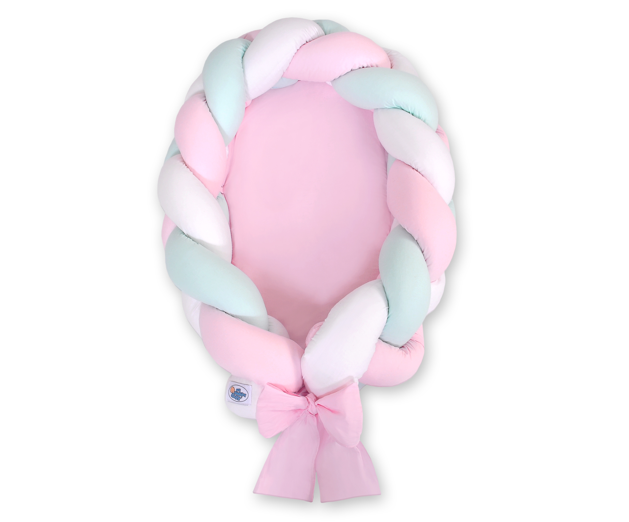 Geflochtenes Babynest 2 in 1 Bettumrandung - weiß-rosa-minze