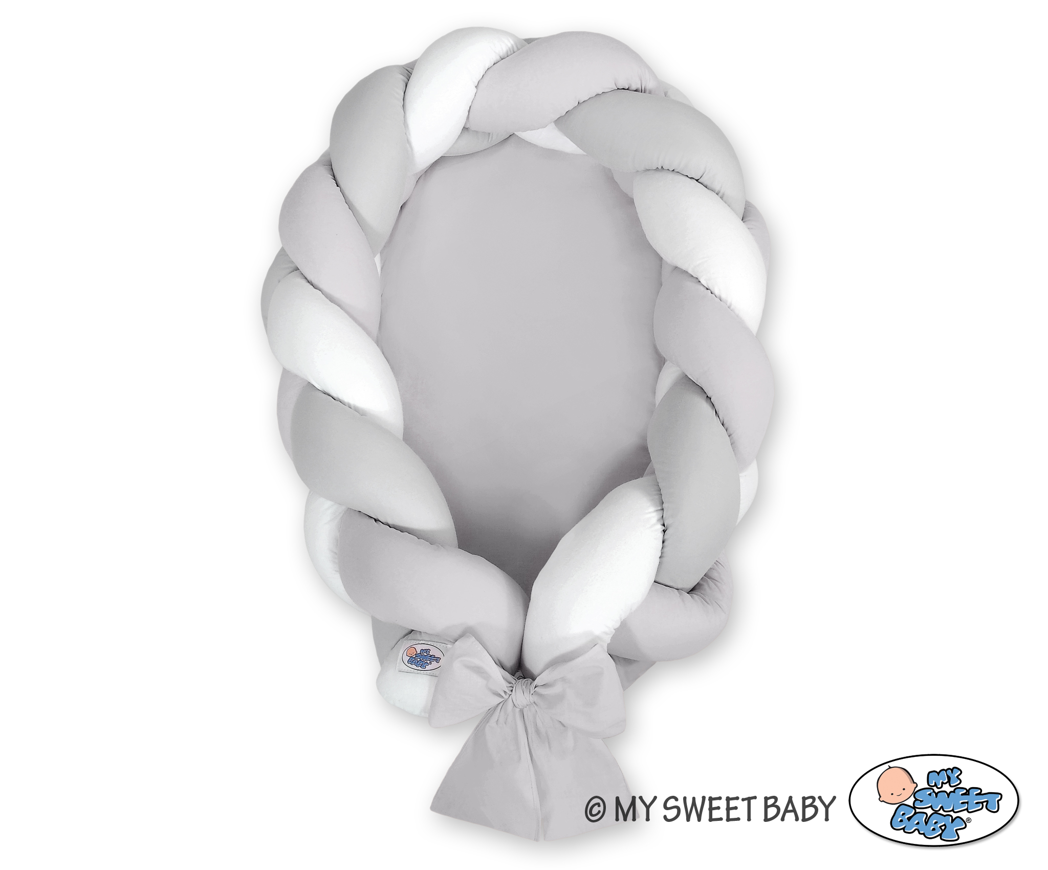 Geflochtenes Babynestchen 2 in 1 Bettumrandung - weiß-grau
