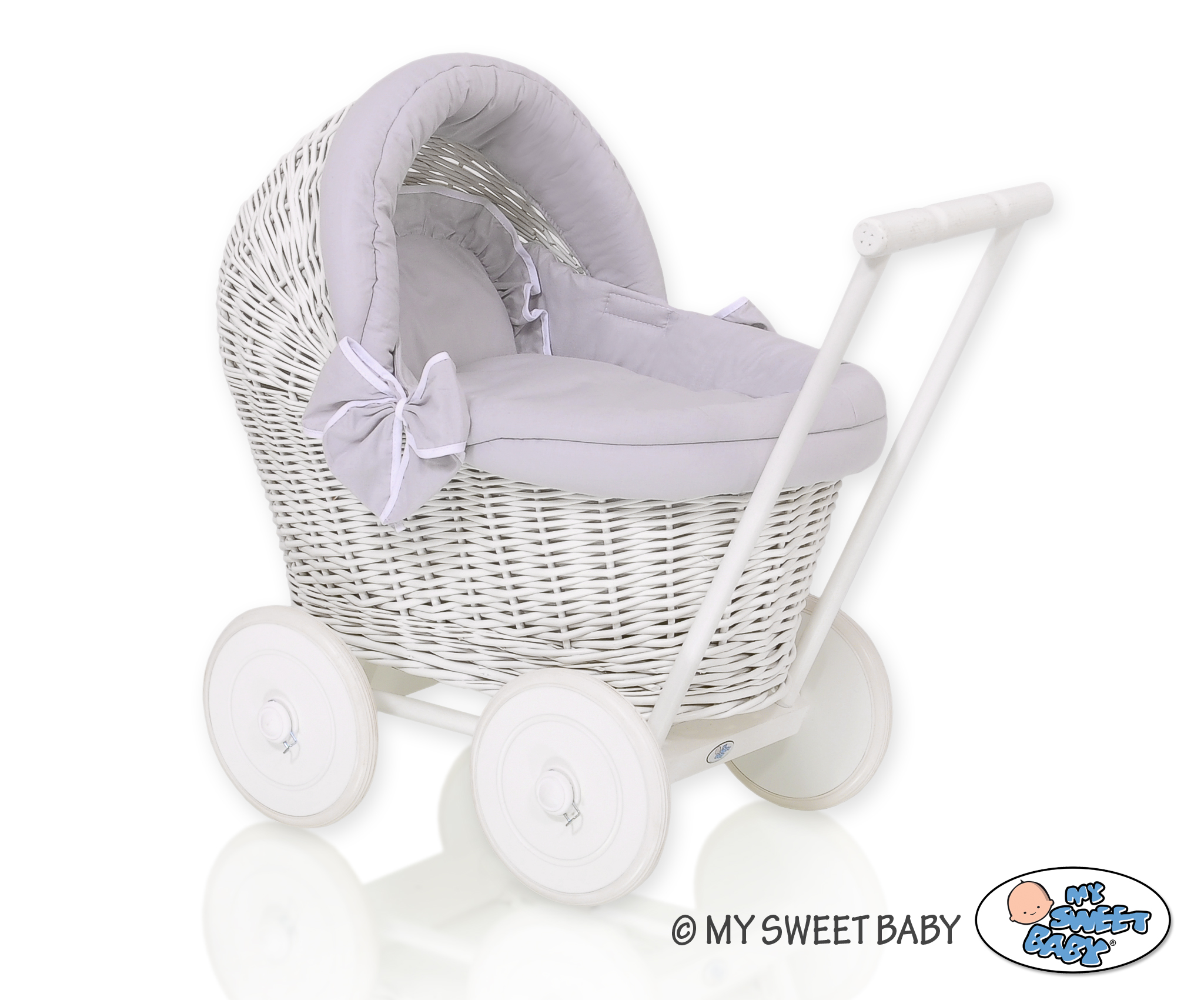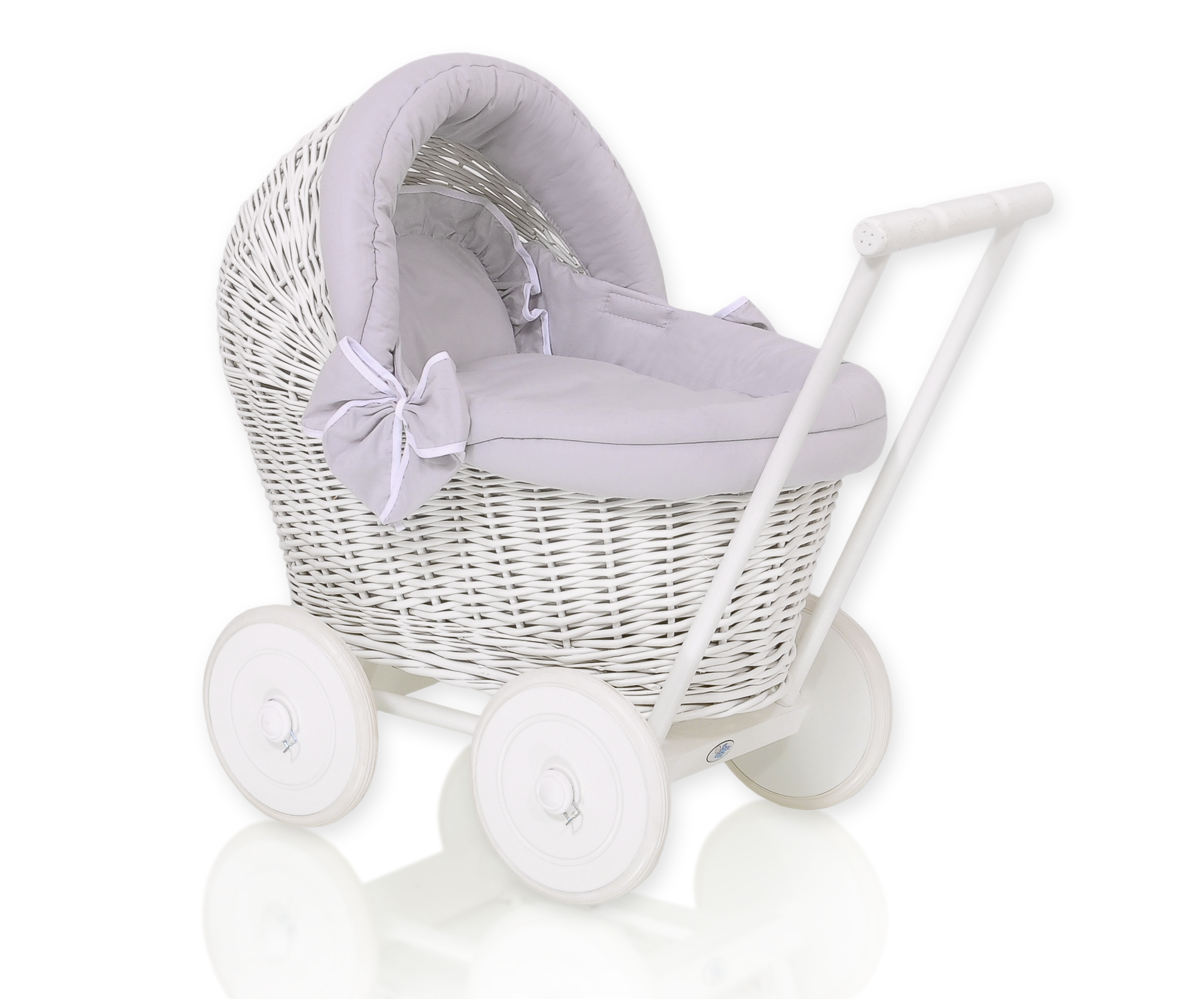 Stubenwagen » Spielzeug Kuscheltiere » Puppenwagen und Spielzeug » Puppenwagen aus Weide » Gelflecht Puppenwagen Weiße Weide Bettwäsche Grau nr 71703-523