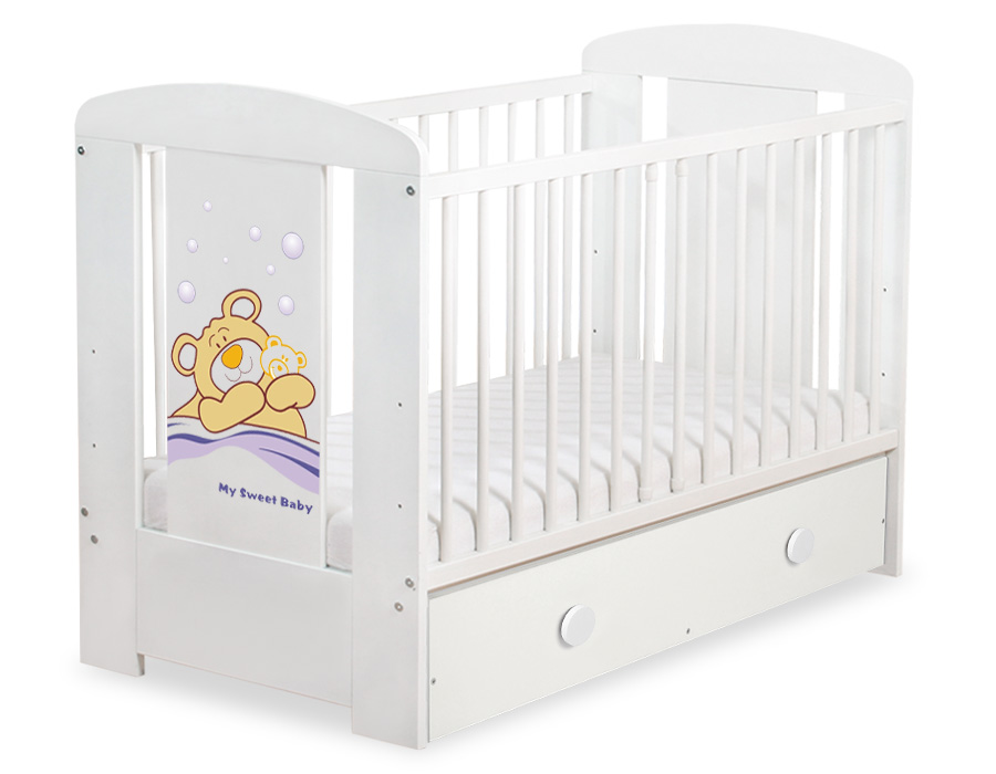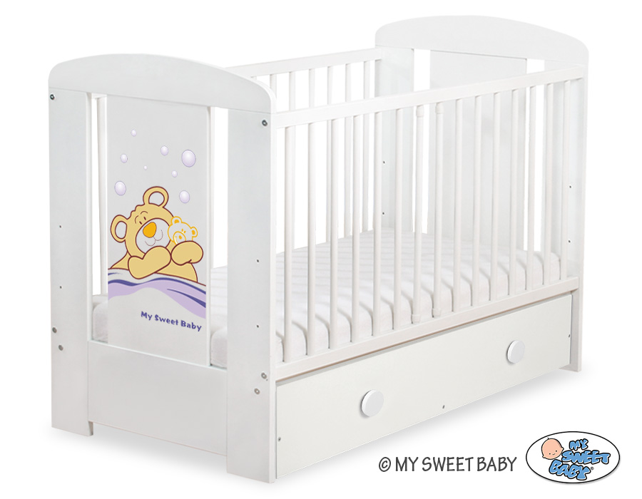 Stubenwagen » Babybett 60x120 cm » Babybetten 120x60cm mit Schublade » Babybett mit Schublade 60x120 Teddy Bär Barnaba » Gitterbett 120x60cm Teddy Bär Barnaba Lila Schublade MAXI
