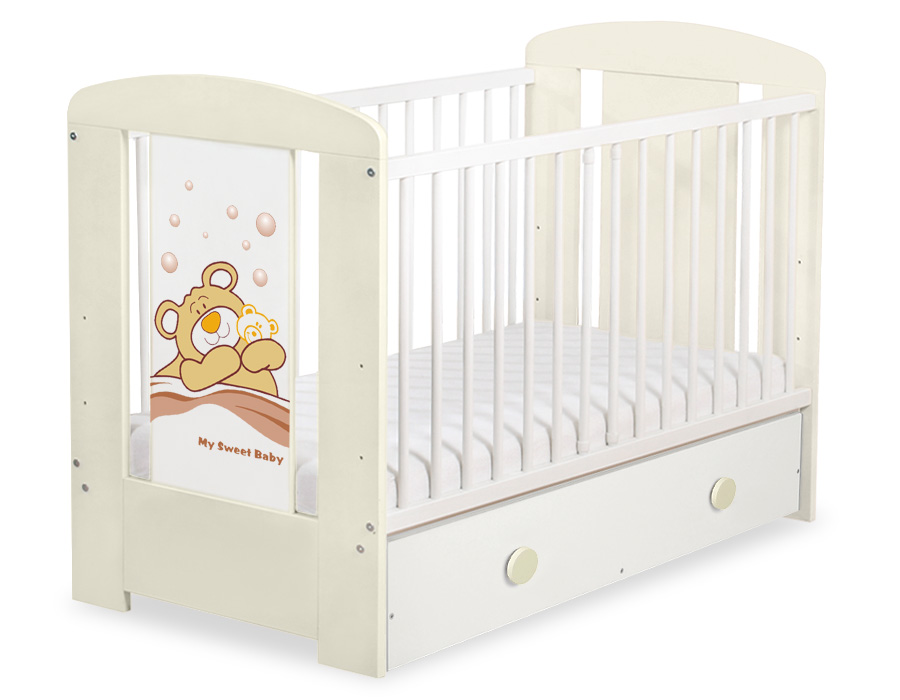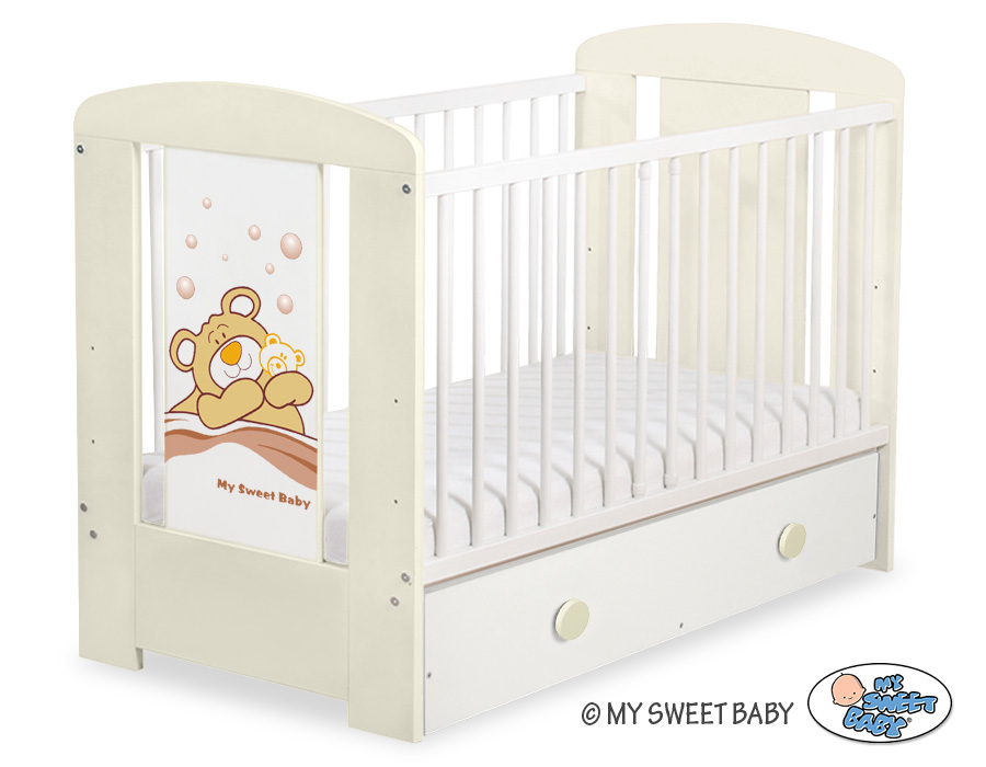Stubenwagen » Babybett 60x120 cm » Babybetten 120x60cm mit Schublade » Babybett mit Schublade 60x120 Teddy Bär Barnaba » Gitterbett 120x60cm Teddy Bär Barnaba mit Schublade MAXI