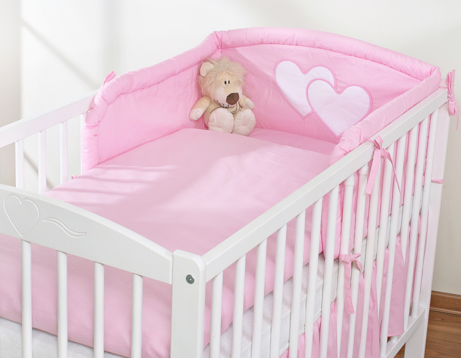 Für Kinderbett 60x120cm und 70x140cm Rosa Herzen Hängende Gitterbettwäsche