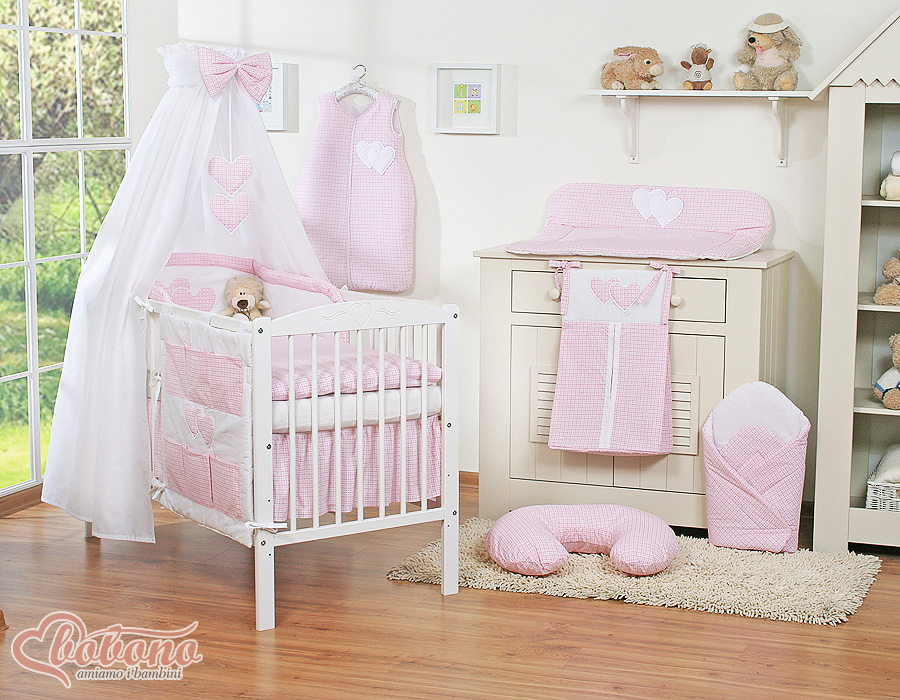 Gitterbettwäsche Set 5-tlg mit Himmel - Hängende Herzen rosa keriert In der liebevoll gestalteten Bettwäsche lässt es sich herrlich schlummern. Die hautverträgliche Qualität lädt zum Träumen ein.