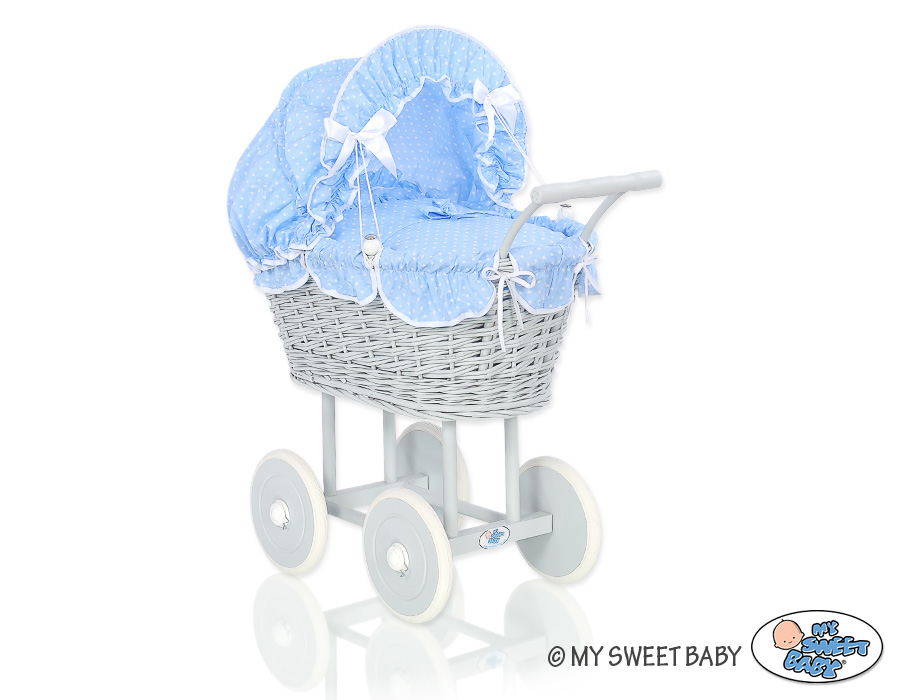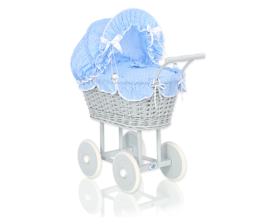 Stubenwagen » Spielzeug Kuscheltiere » Puppenwagen und Spielzeug » Puppenwagen aus Weide » Grau Puppenwagen Bettwäsche Blau mit Weiß Punktmuster nr 61699-588