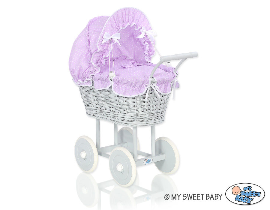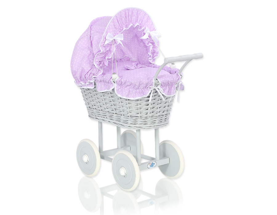 Stubenwagen » Spielzeug Kuscheltiere » Puppenwagen und Spielzeug » Puppenwagen aus Weide » Grau Puppenwagen Bettwäsche Lila mit Weiß Punktmuster nr 61699-534