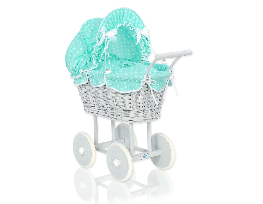 Eine wunderbare Geschenkidee für alle kleinen Mädchen. Sowohl der Korb aus Weide, als auch das Holzuntergestell entstehen in Handarbeit. Die Retropuppenwagen sind in vielen wunderschönen Farben verfügbar. Die sanften Pastelltöne des Puppenwagens ergeben eine wunderschöne Kombination mit den verschiedenen Farben der Bezüge. Dadurch sind unsere Puppenwagen wunderschönes Spielzeug und ein richtiges Hingucker.
