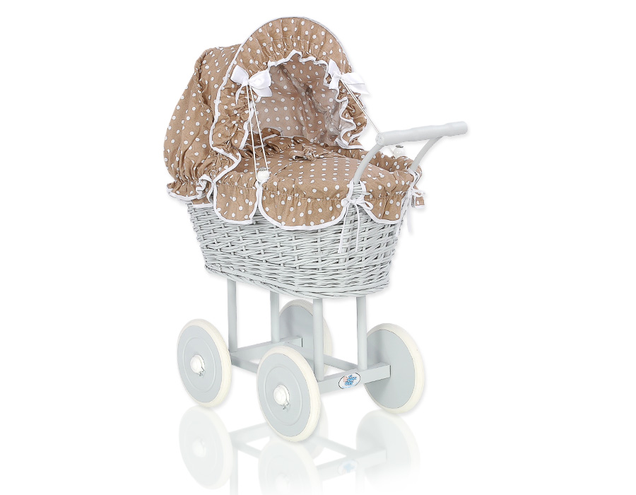 Eine wunderbare Geschenkidee für alle kleinen Mädchen. Sowohl der Korb aus Weide, als auch das Holzuntergestell entstehen in Handarbeit. Die Retropuppenwagen sind in vielen wunderschönen Farben verfügbar. Die sanften Pastelltöne des Puppenwagens ergeben eine wunderschöne Kombination mit den verschiedenen Farben der Bezüge. Dadurch sind unsere Puppenwagen wunderschönes Spielzeug und ein richtiges Hingucker.