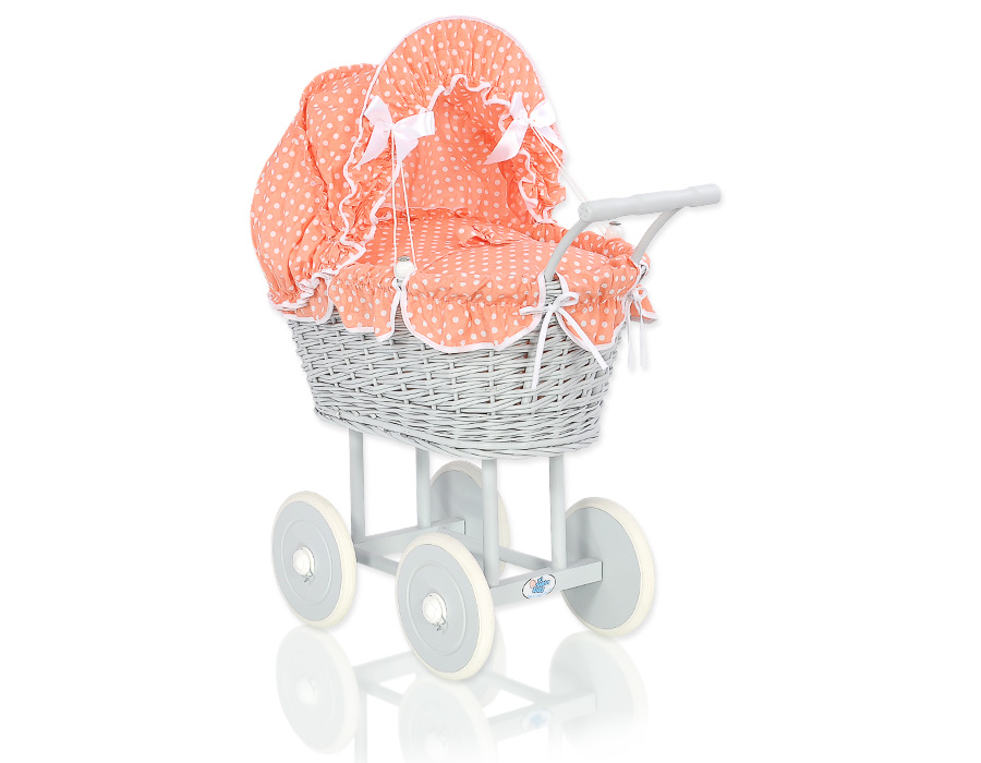 Stubenwagen » Spielzeug Kuscheltiere » Puppenwagen und Spielzeug » Puppenwagen aus Weide » Grau Retro Puppenwagen Bettwäsche Pfirsich Punktmusternr 61699-761