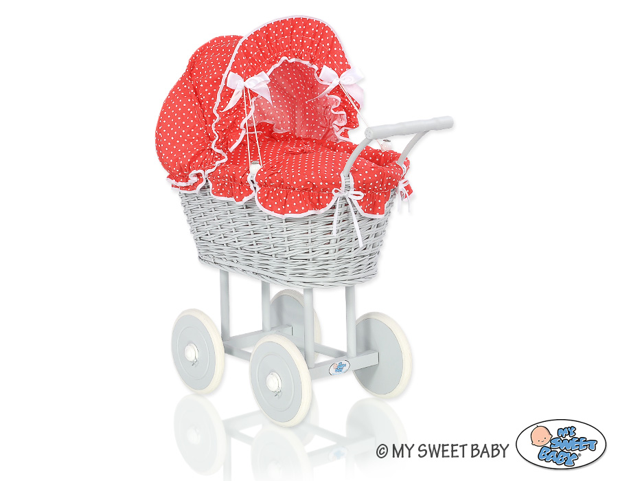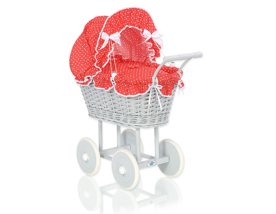 Stubenwagen » Spielzeug Kuscheltiere » Puppenwagen und Spielzeug » Puppenwagen aus Weide » Grau VintagePuppenwagen Bettwäsche Rot mit Punktmuster nr 61699-763